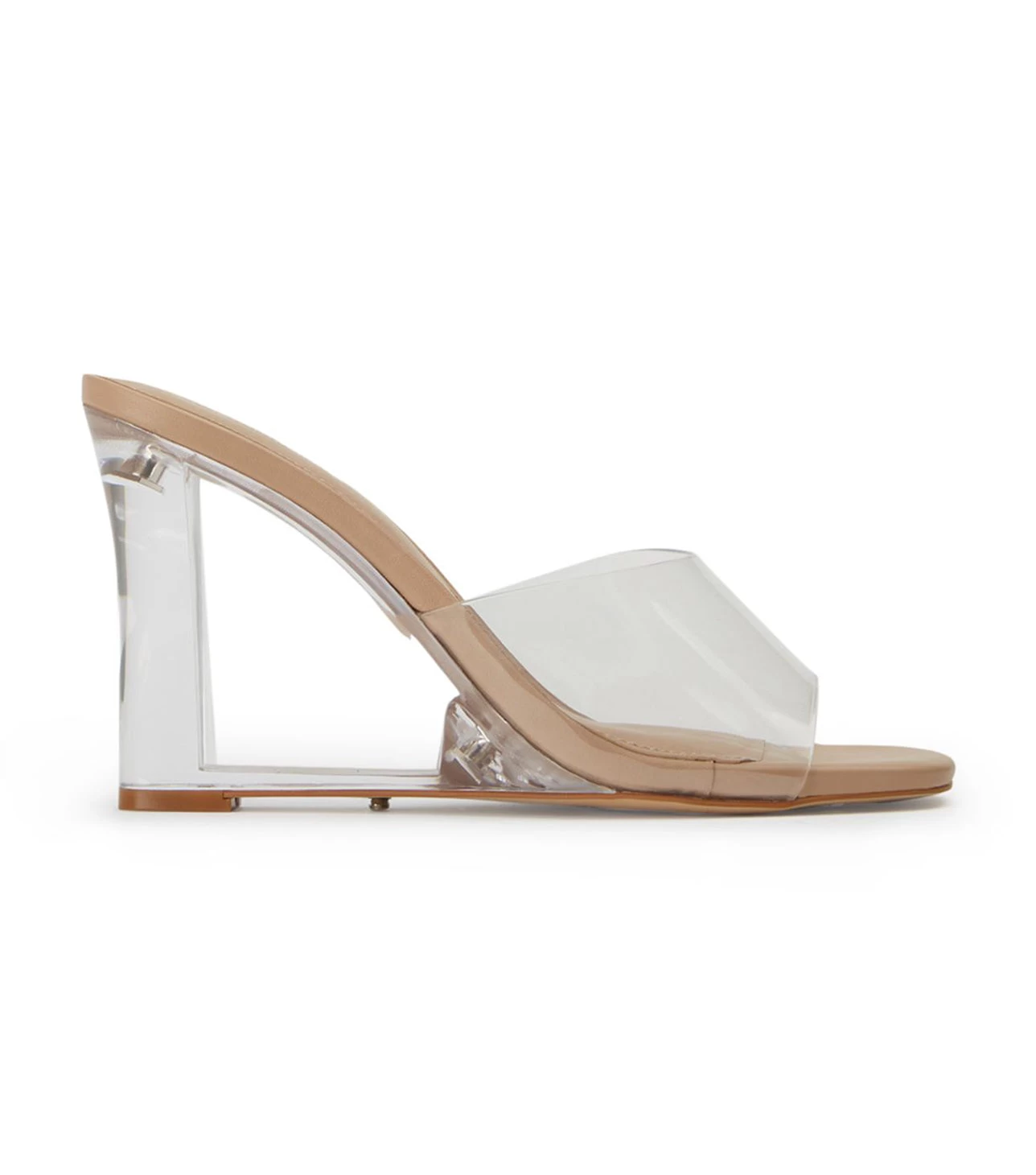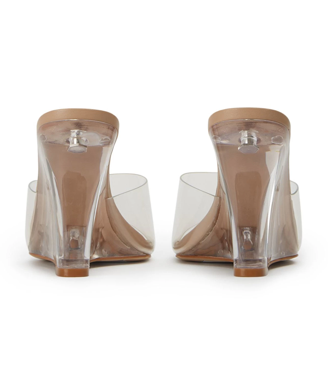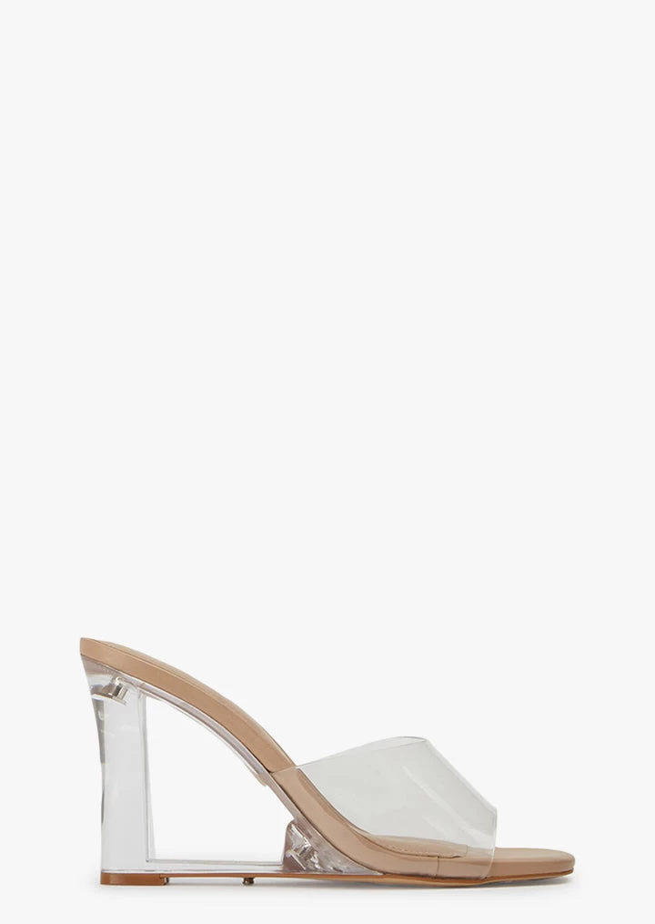 See-through style sorted with the new Alessi perspex wedges. Designed with a clear vinylite upper and tonal foot bed, this leg-lengthening style is the perfect lucite mule with the versatility to take you from day-to-night.