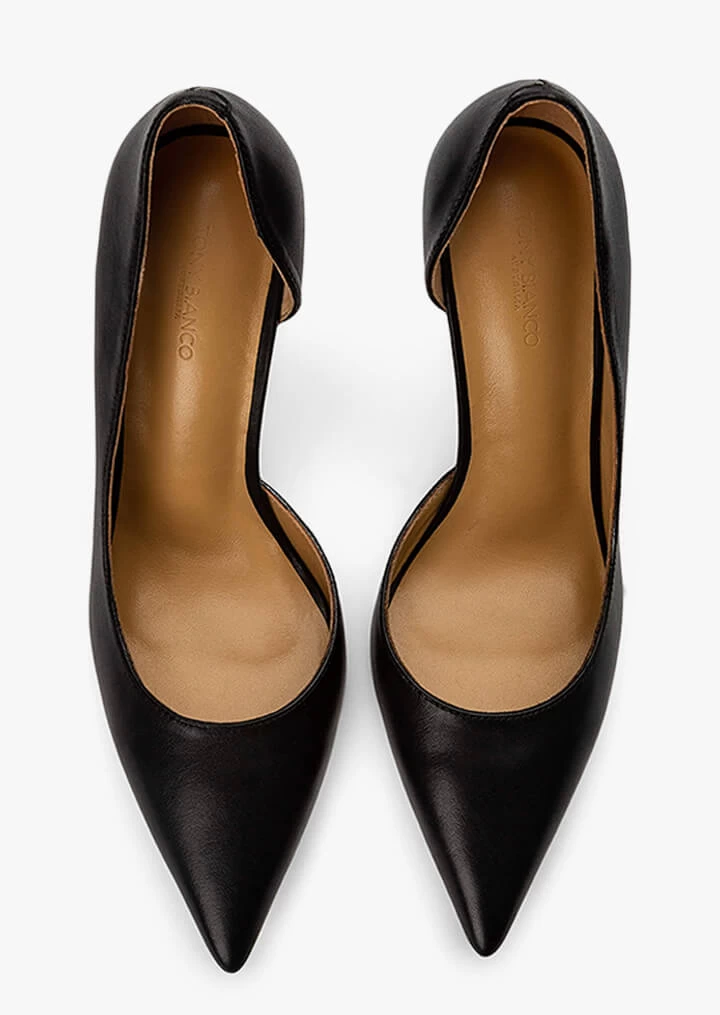 For a court shoe that exudes femininity look no further than the Alyx black stiletto heel. Showcasing a perfectly pointed toe-shape, these black pump shoes are designed with an ultra high stiletto heel, a curved vamp and is finished with a classic black hue. Pair with fitted pants and a blazer for a corporate work shoe option.