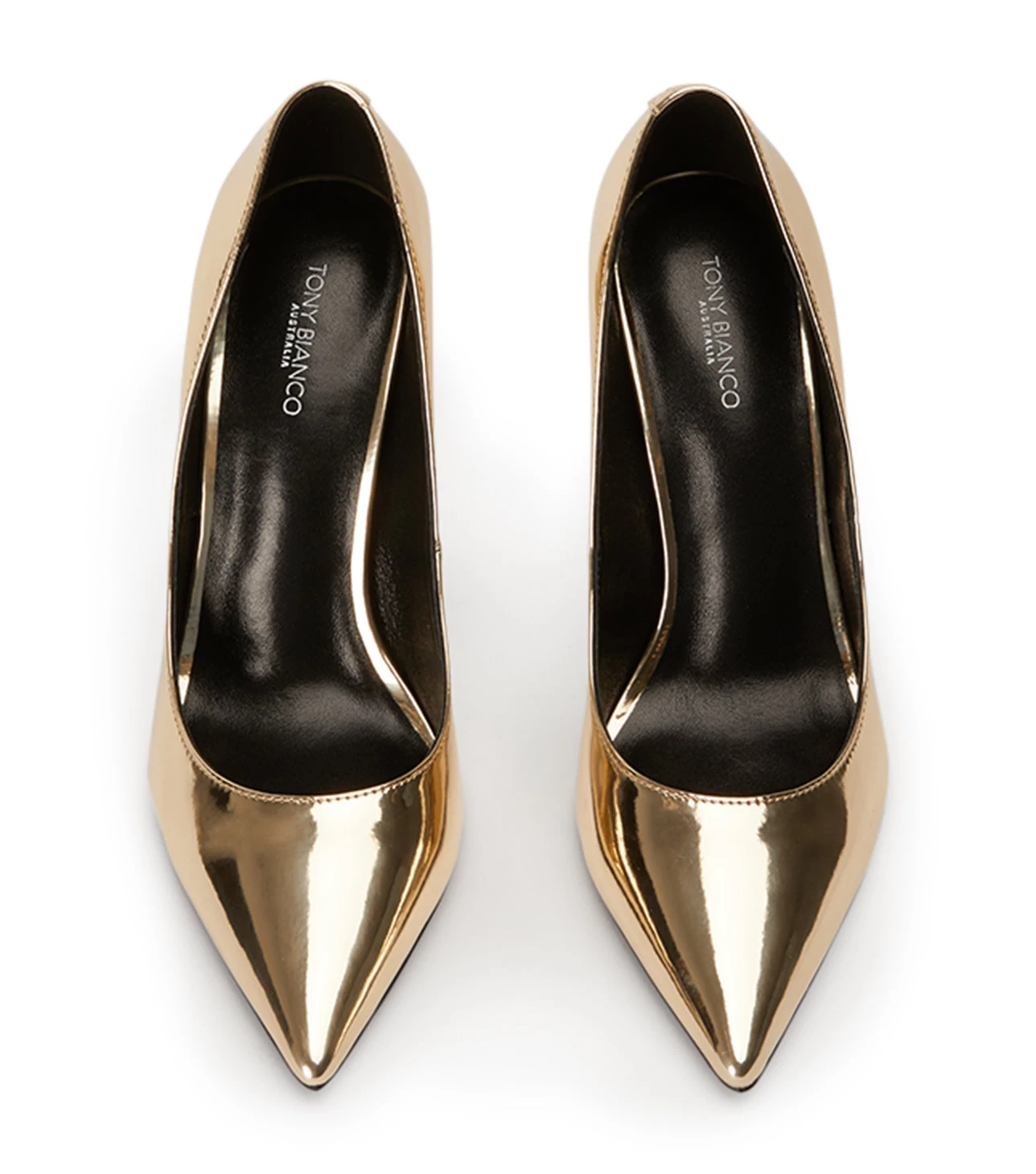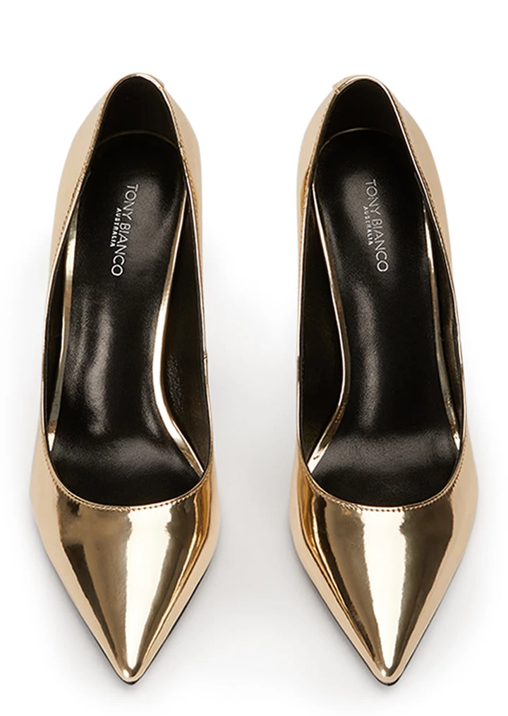 Perfect for every occasion are the Anja gold stiletto heels. Capturing the elegance of a classic pump, with a scooped upper to create a flattering silhouette and stiletto heel, she is a must have for your shoe-drobe collection.