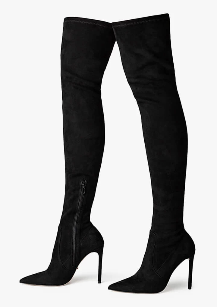Sometimes more is more, especially with Avah our latest thigh-high stretch boot. With an ultra high over-the-knee silhouette, chic stiletto heel and elongated point, this design is here to level up the glamour in your wardrobe, one step at a time.