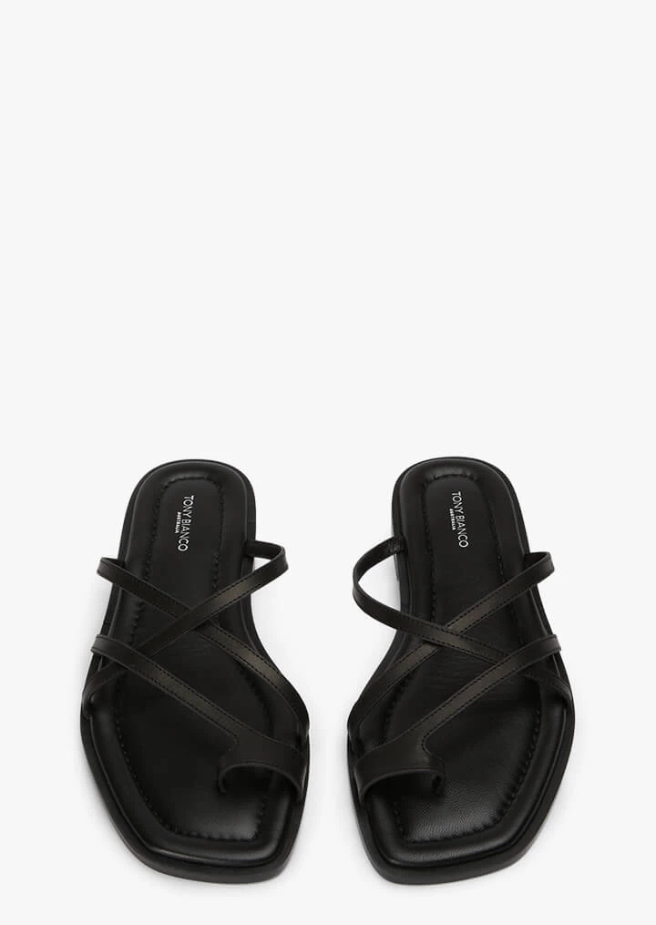 A strappy delight is our Benson sandal in black. Featuring upper strap detailing with a toe ring, this style is best worn with either denim or maxi dresses.
