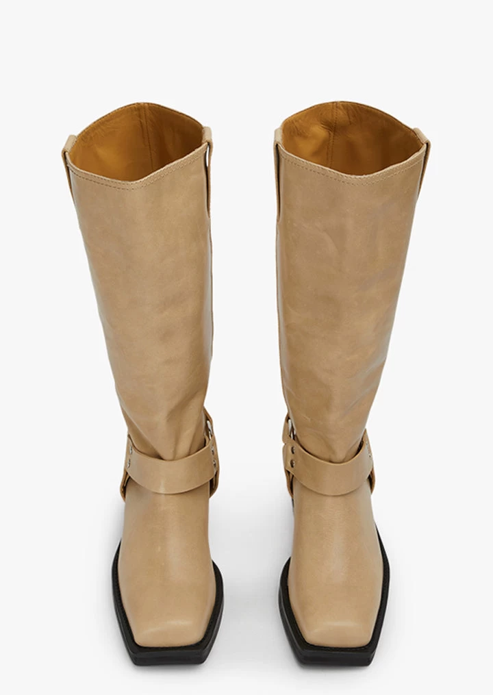 Staying on trend has never been easier with Biker. Featuring a squared toe shape and side accent, this calf boot remains a classic staple for anyone who desires just a little bit of edge. Pair with jeans, a knitted dress or mini skirt, the options are endless.