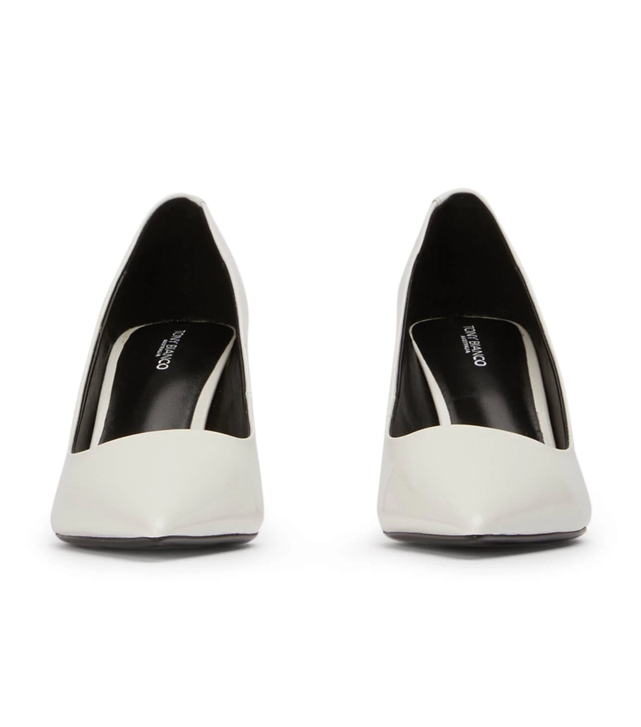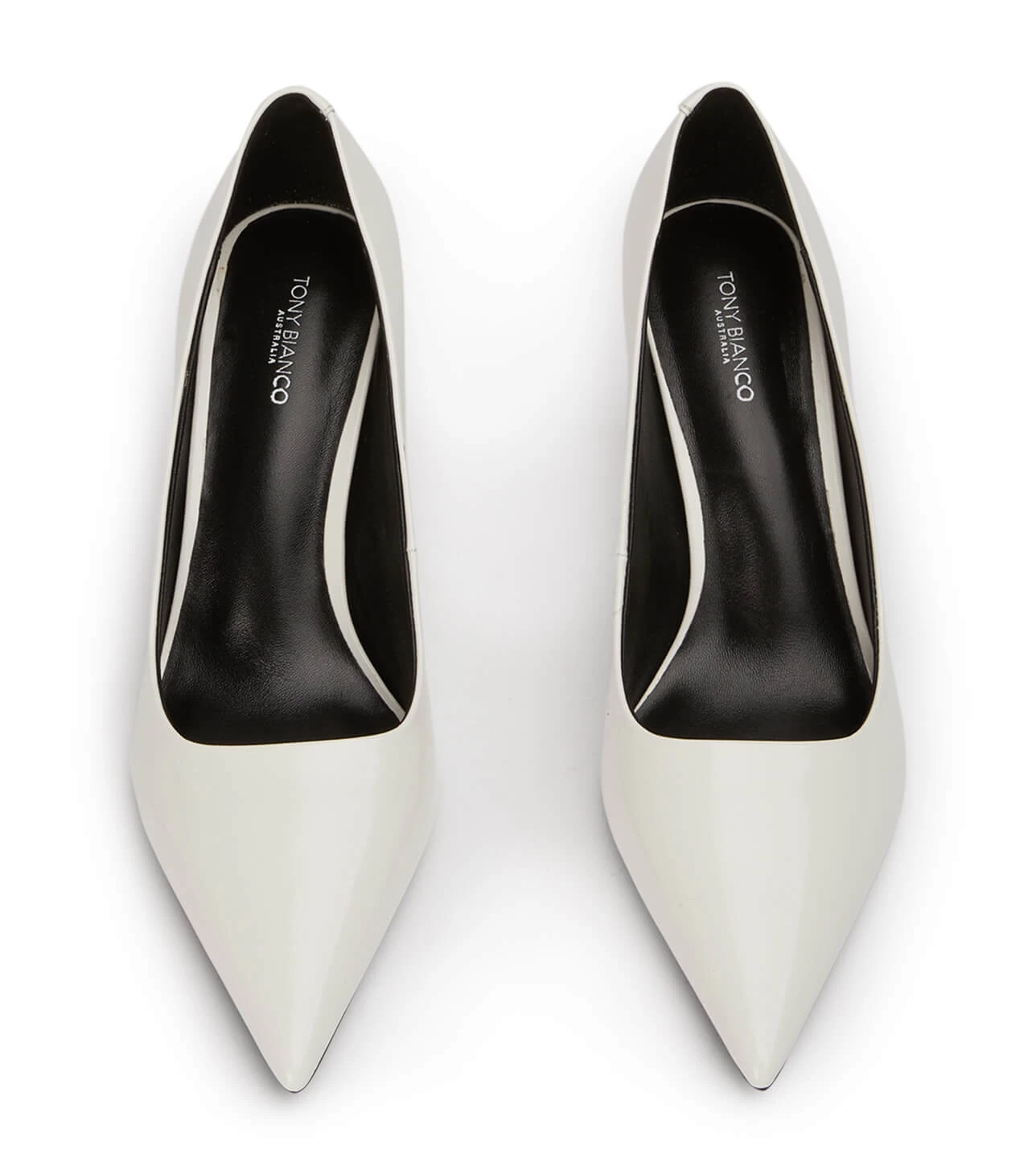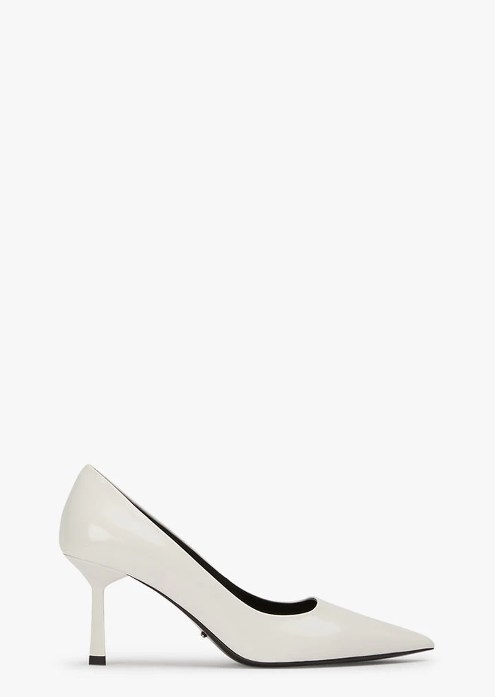 Nothing says chic sophistication quite like Billy. A pointed-toe court heel, featuring a vintage inspired stiletto heel and a sleek timeless silhouette. Finished in our signature white hi shine leather for an elegant and stylish look.