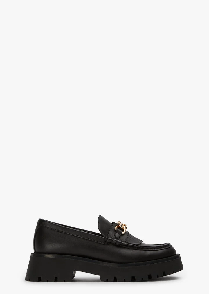 The loafer with it all, introducing Brandi. Featuring exposed stitching and a gold chain across the tongue, a chunky sole and super smooth leather finish. Brandi offers that little bit more to compliment your look this season.