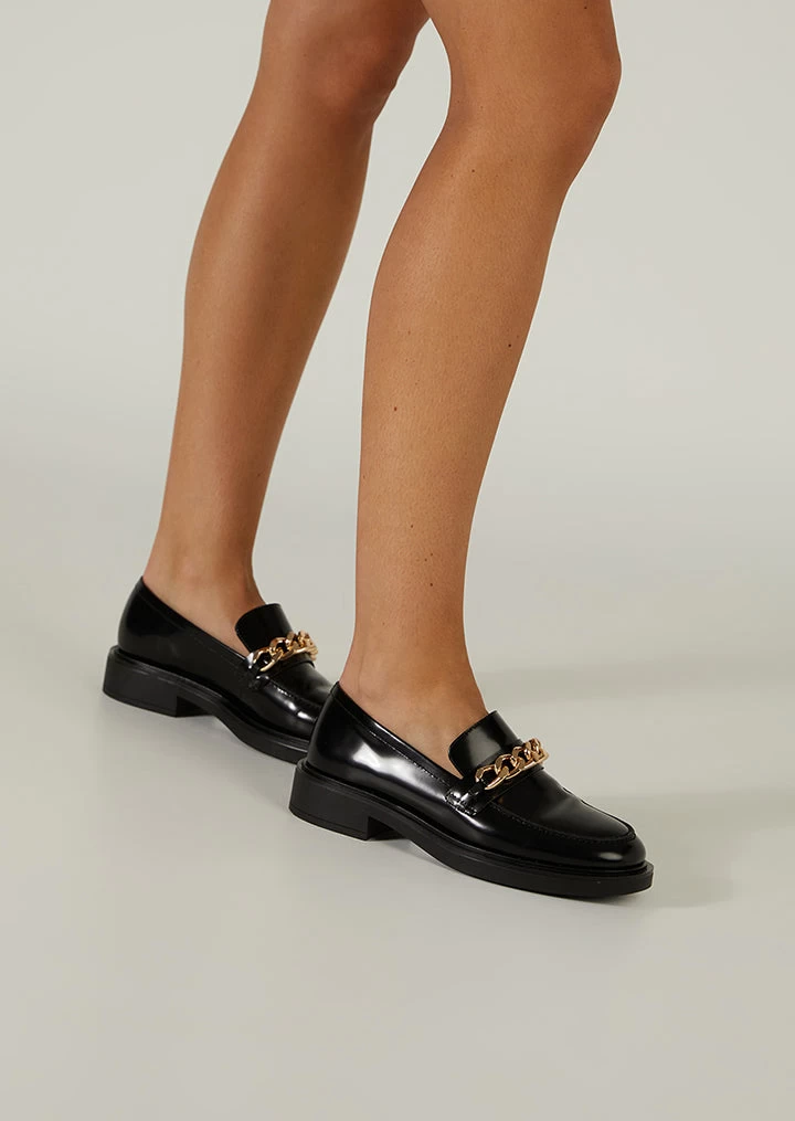 Make it edgy with Candice. Simple and on trend, this leather hi-shine loafer features a statement gold chain across the top and is injected with a cushioned sole for ultimate comfort. What are you waiting for?