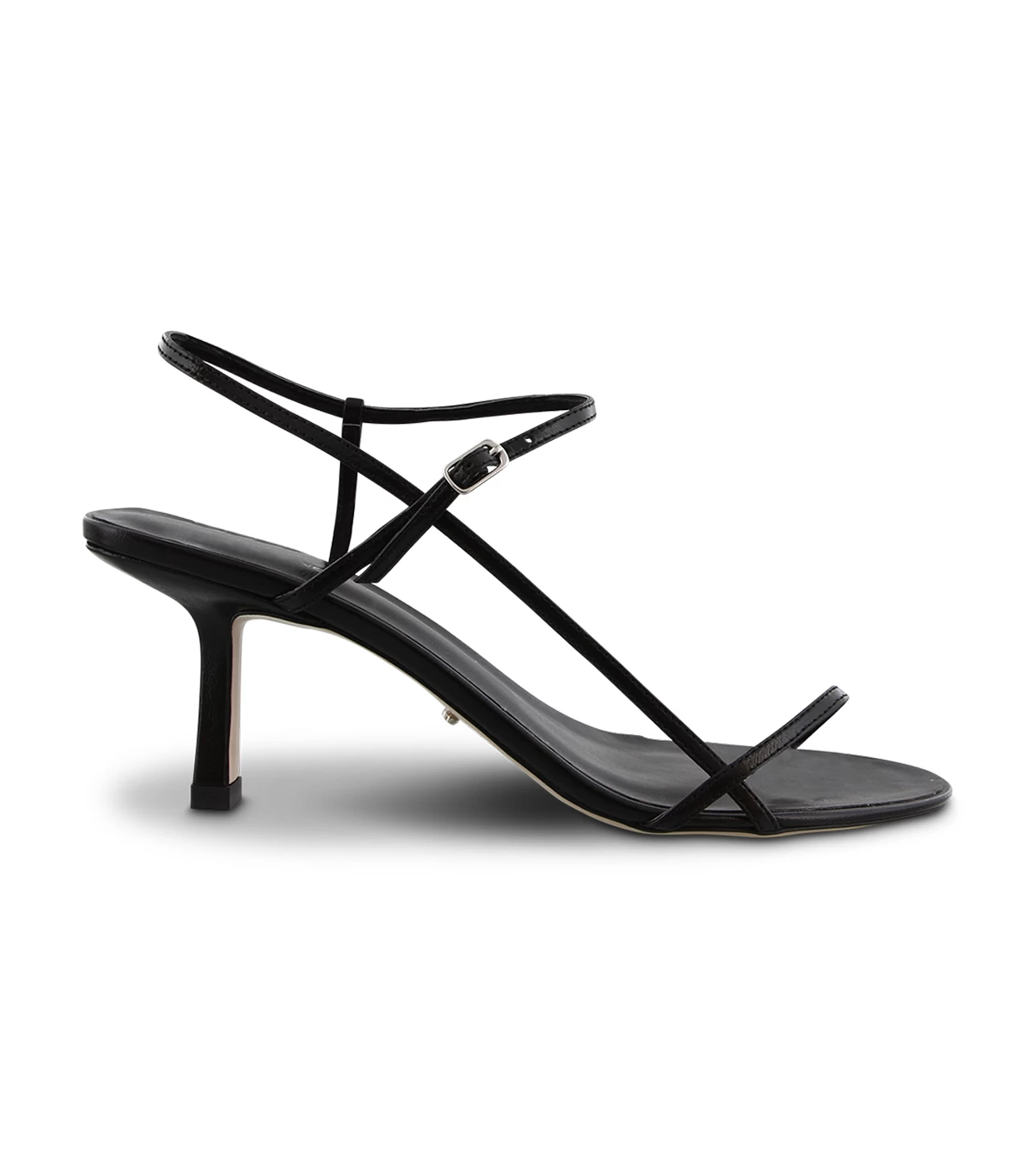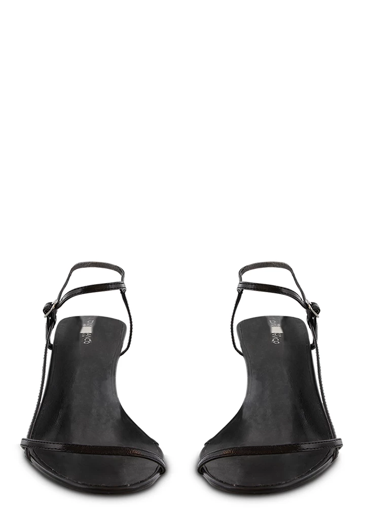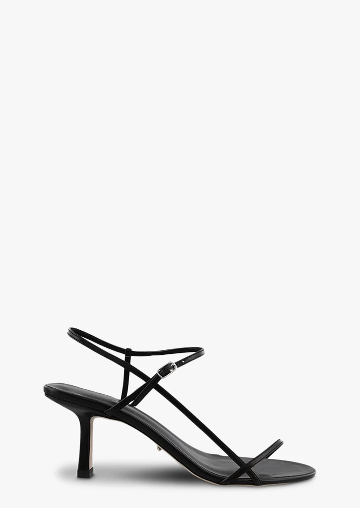 Sleek and sophisticated, the Caprice sandal heel boasts a bare and minimal aesthetic. Featuring thin straps to the toe and upper, this style is finished with a open almond toe-shape and a secure ankle buckle.
