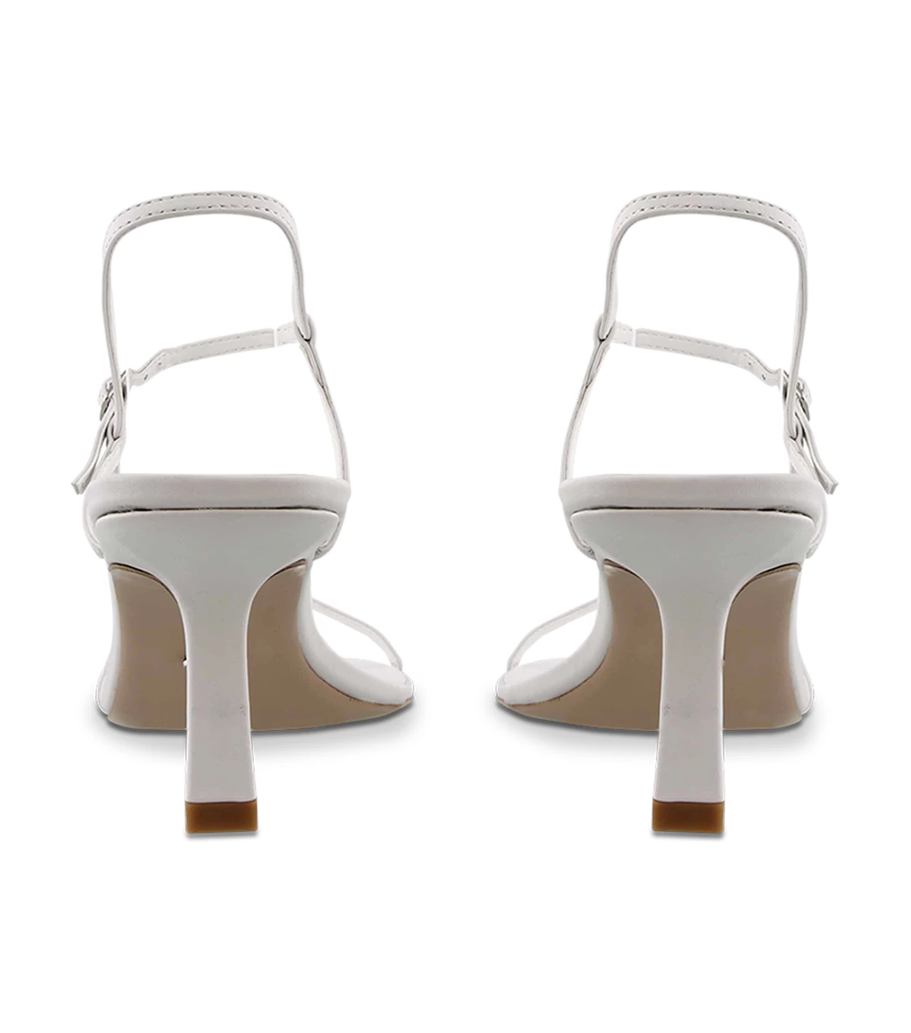 Sleek and sophisticated, the Caprice sandal heel boasts a bare and minimal aesthetic. Featuring thin straps to the toe and upper, this style is finished with a open almond toe-shape and a secure ankle buckle.