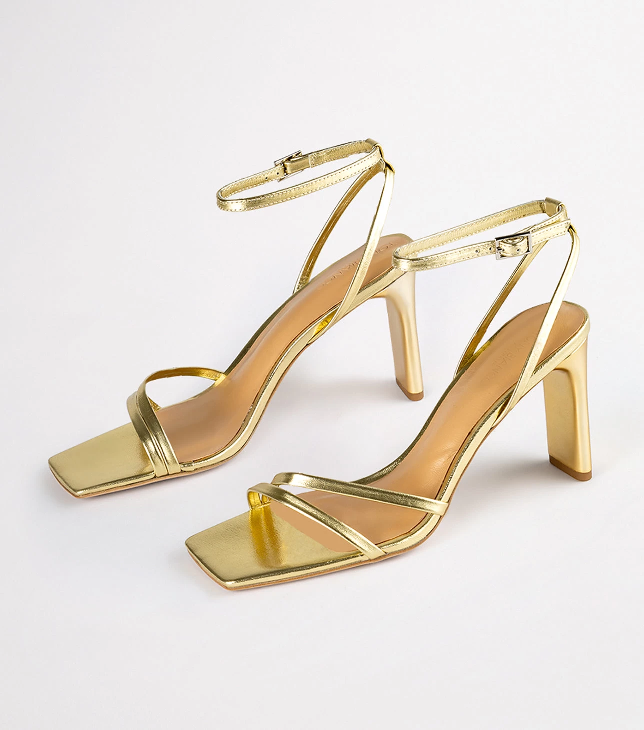 Complete your party look with our Corso strappy heels in gold nappa. Designed with slender foot-framing straps, an adjustable and secure ankle strap, and is finished with a mid-height stiletto heel.