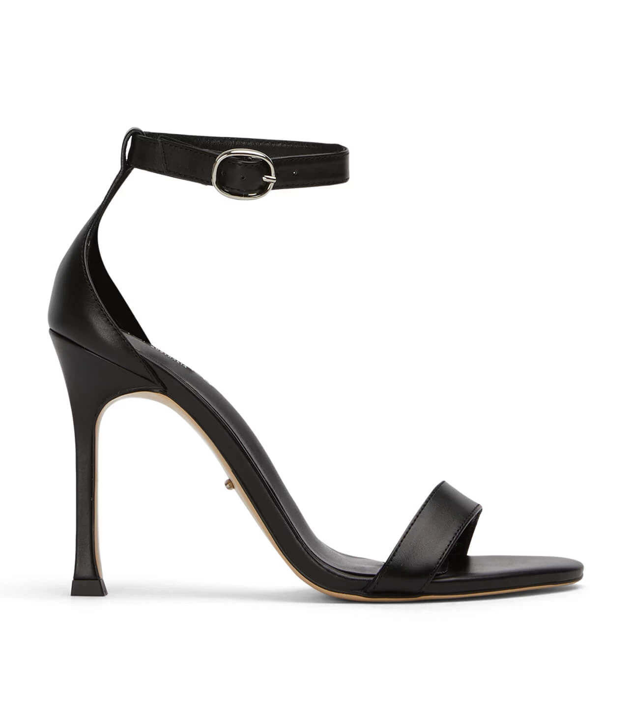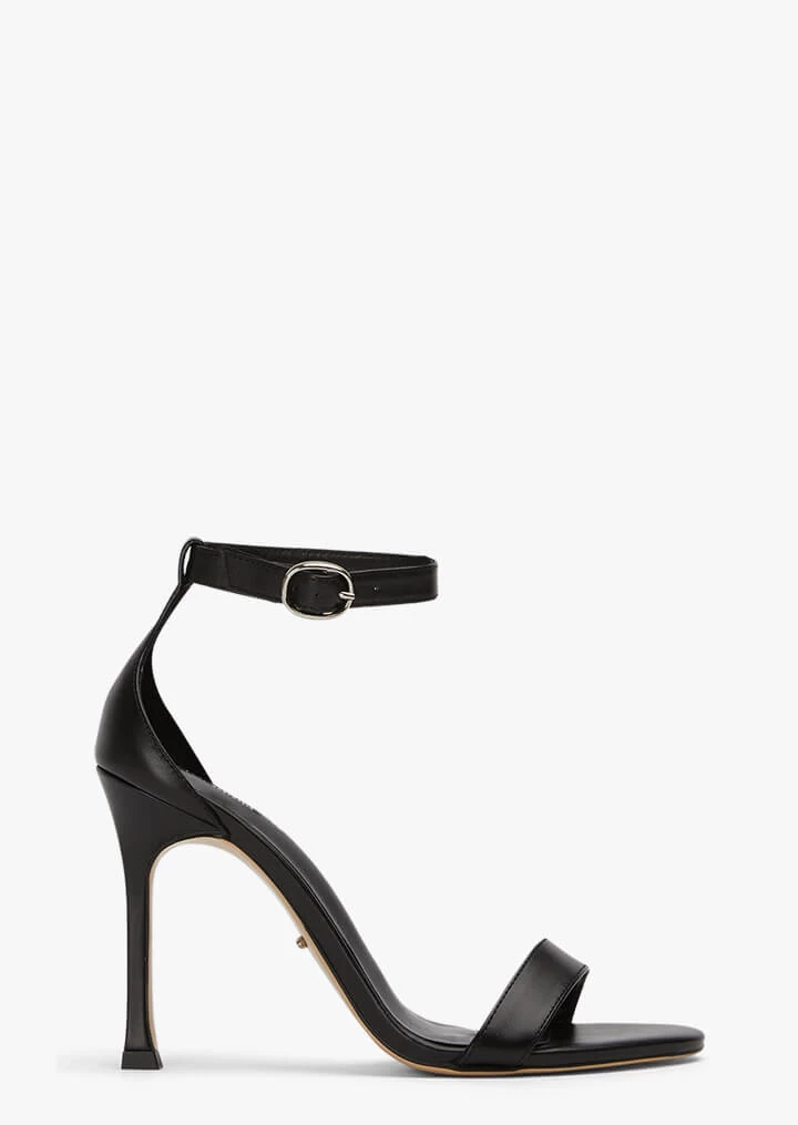 Introducing the Dallas black stiletto heels. With simplistic straps and an open toe, this style is a timeless addition all year long.