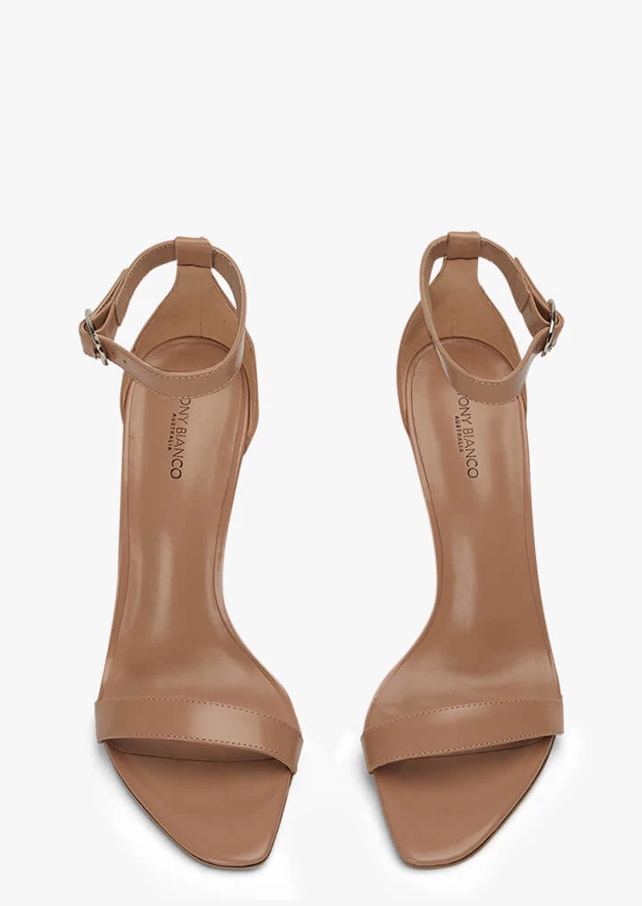 Introducing the Dallas nude patent stiletto heels. With simplistic straps and an open toe, this style is a timeless addition all year long.