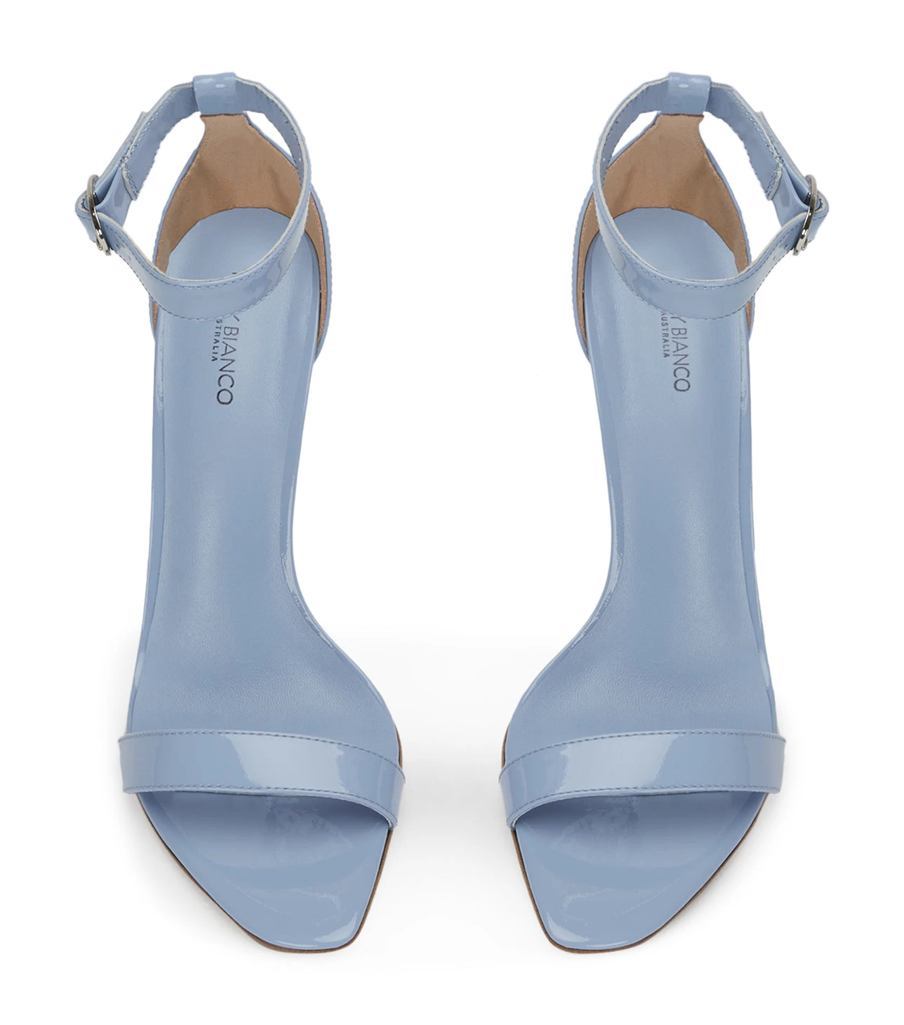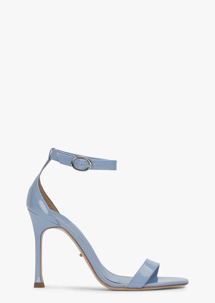Introducing the Dallas blue patent stiletto heels. With simplistic straps and an open toe, this style is a timeless addition all year long.
