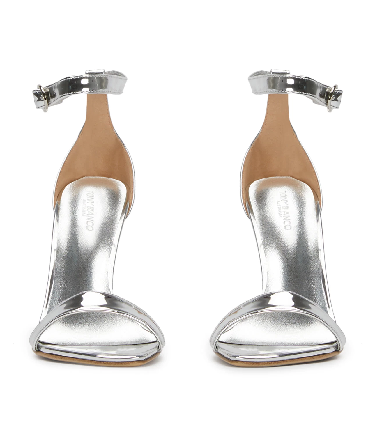 Introducing the Dallas silver metallic stiletto heels. With simplistic straps and an open toe, this style is a timeless addition all year long.