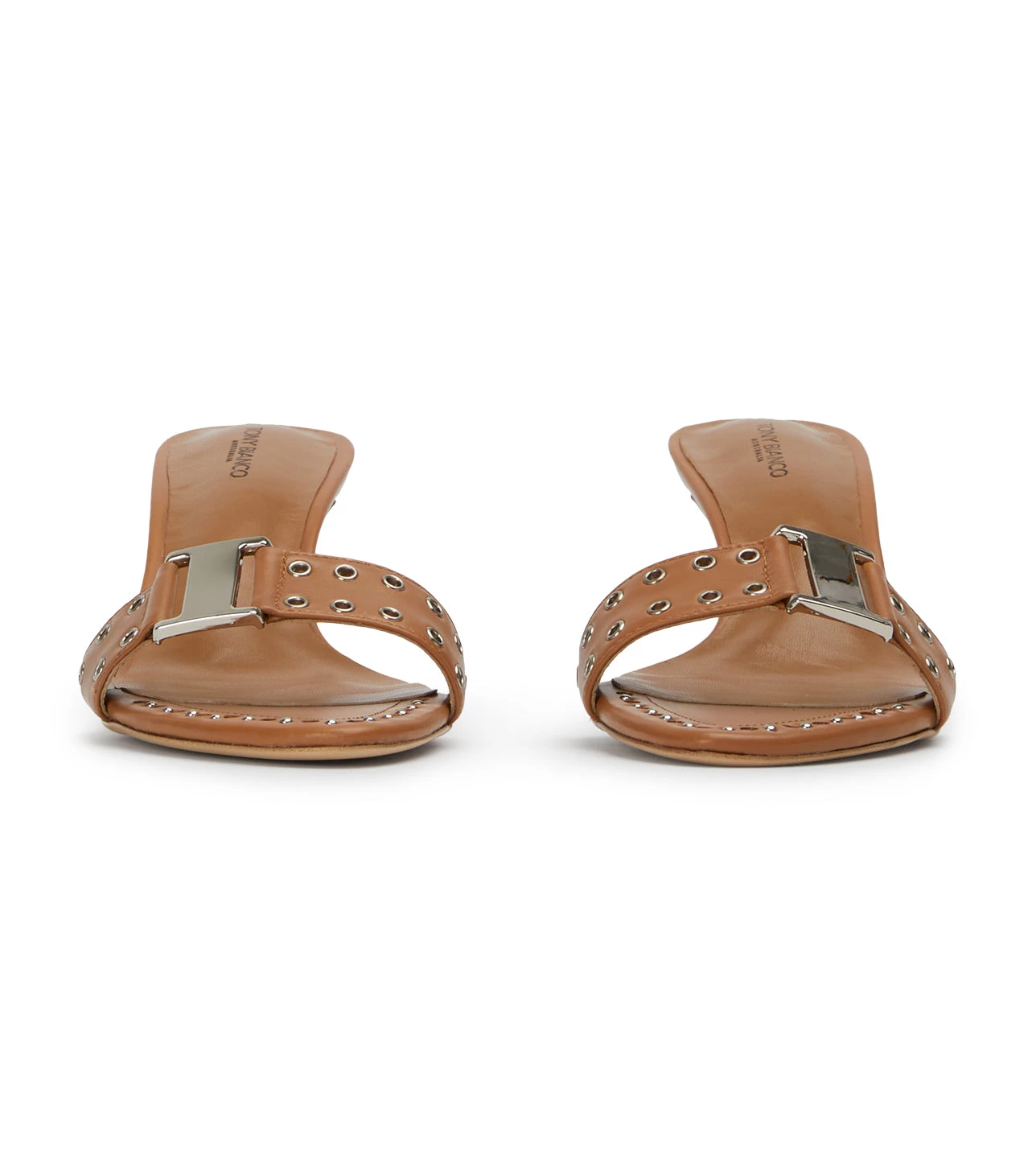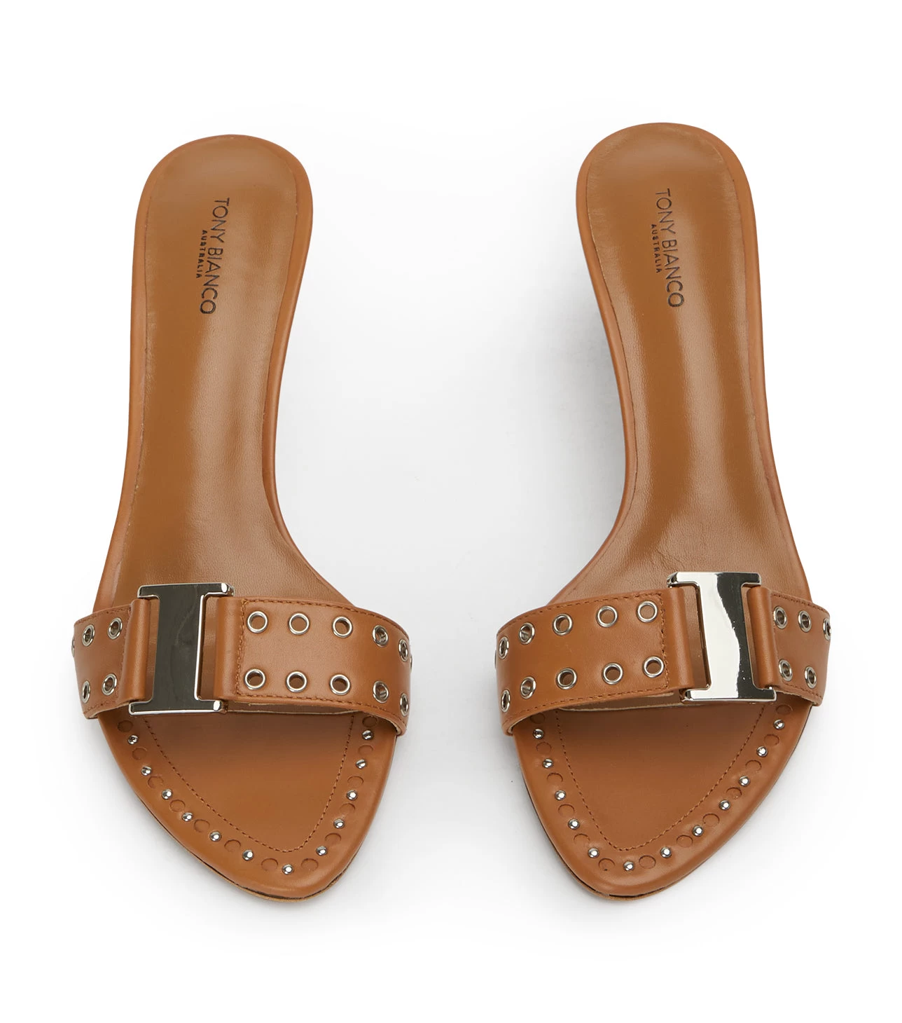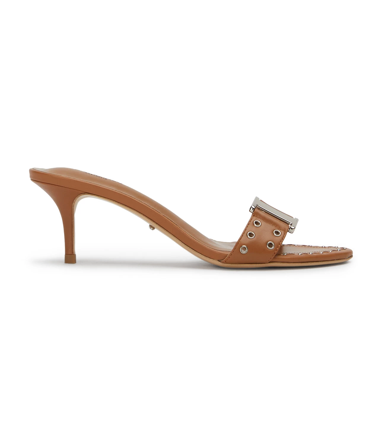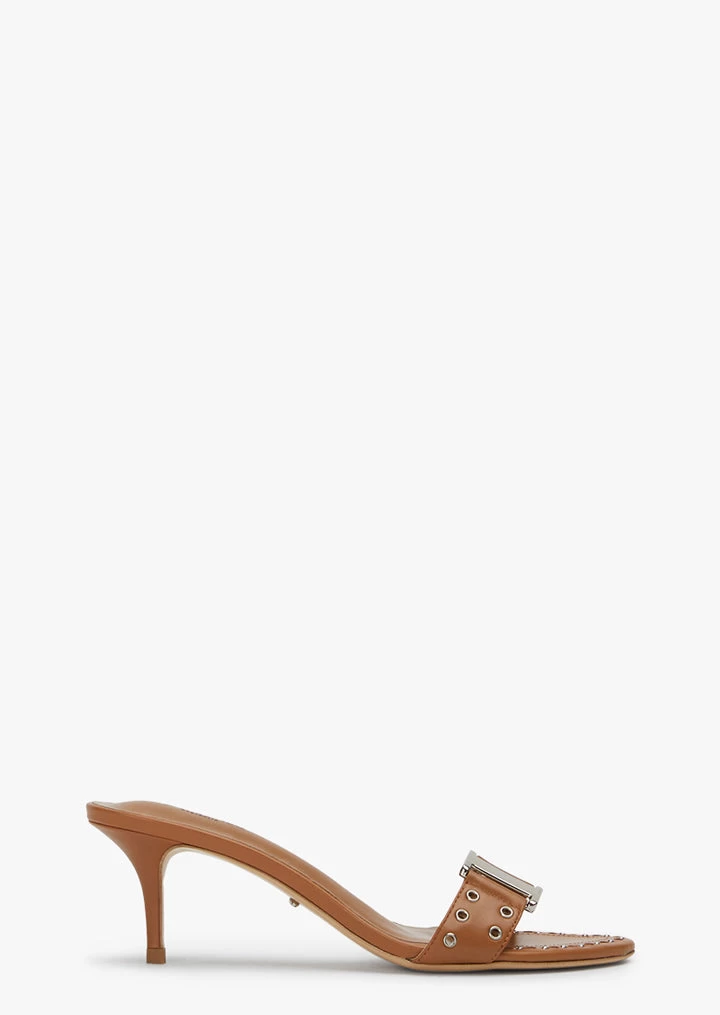 Meet Destiny, our daily go-to tan mule with that little bit more. Features eyelet detailing across the foot strap with a silver buckle and stud detailing.