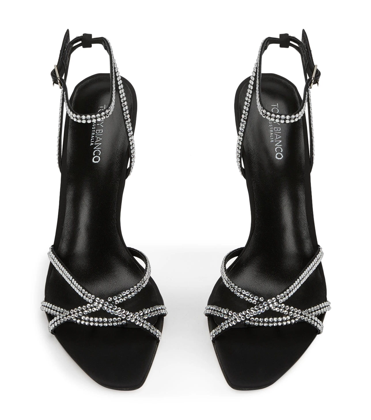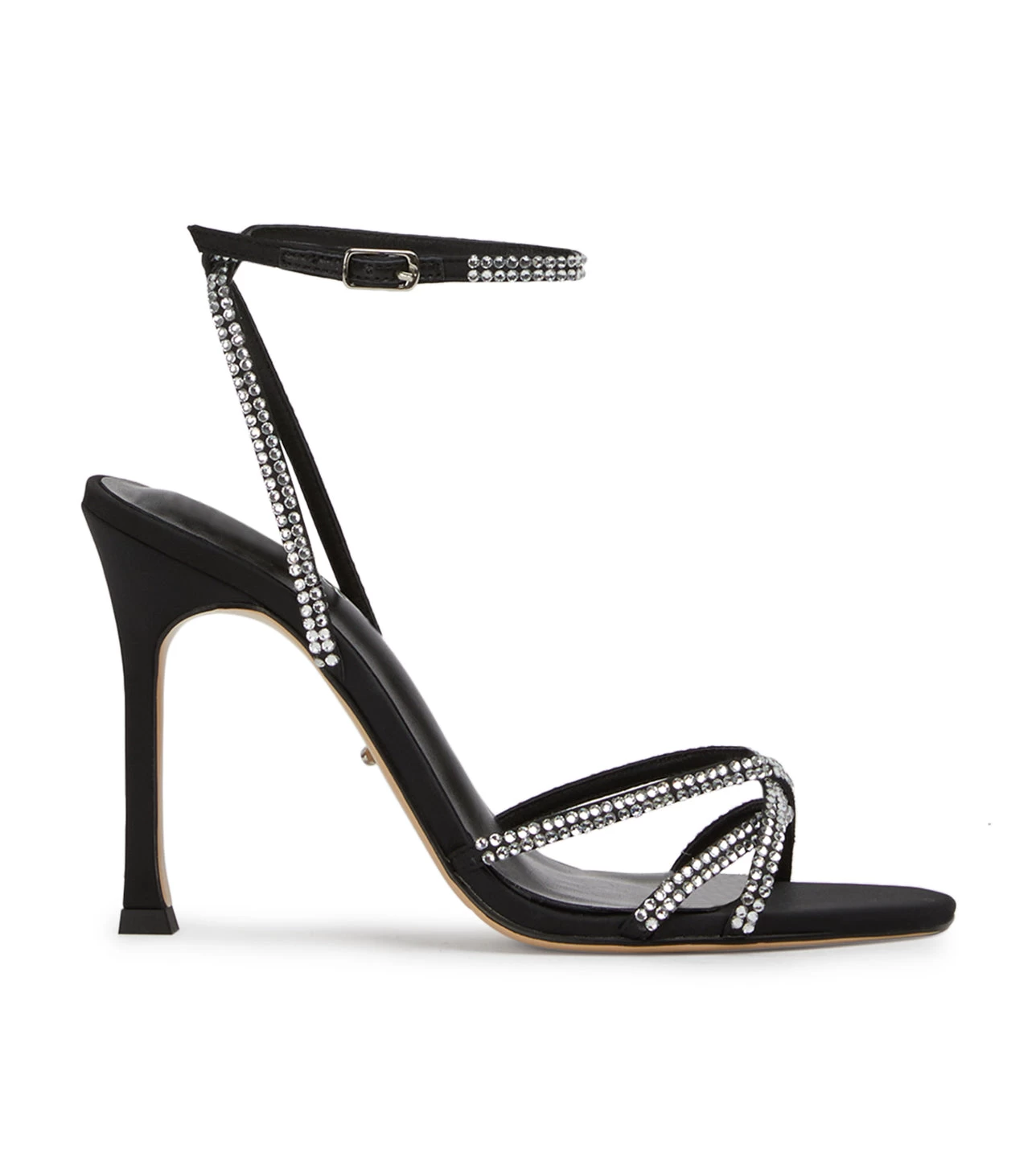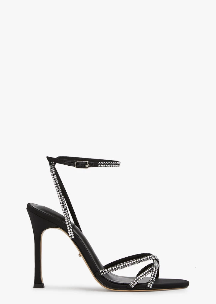 Bejewelled in Dijon, our stiletto heel made for glamorous evenings and assorted affairs. Features delicate strap detailing across the foot and ankle, embellished in silver diamante.