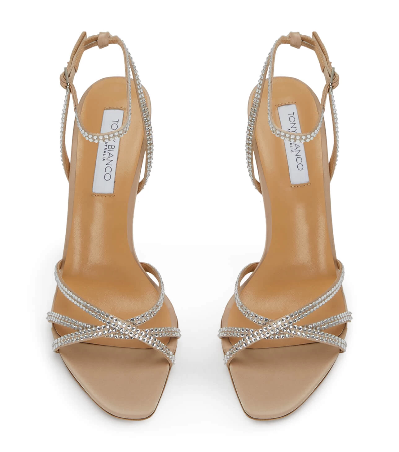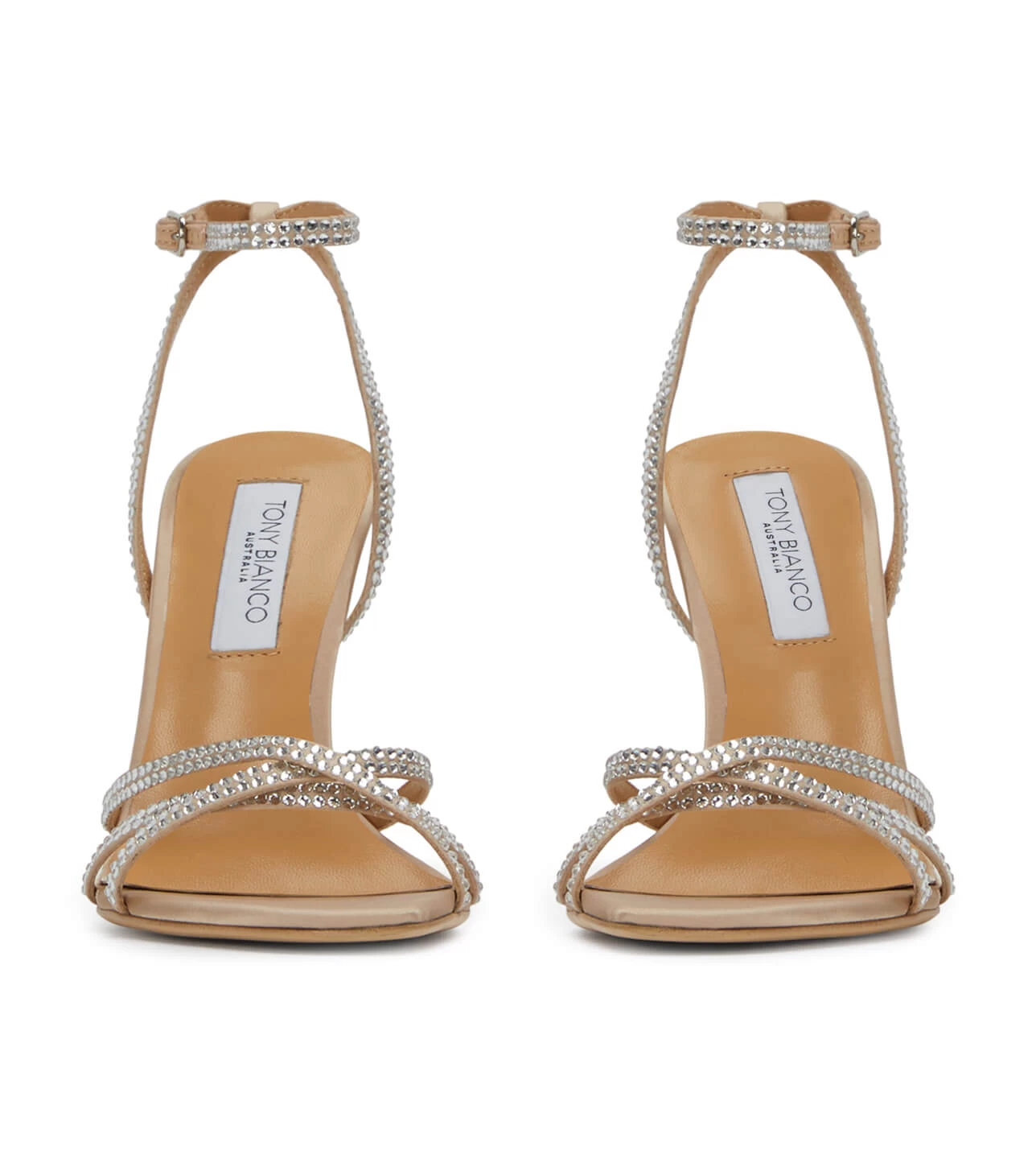 Bejewelled in Dijon, our stiletto heel made for glamorous evenings and assorted affairs. Features delicate strap detailing across the foot and ankle, embellished in silver diamante.