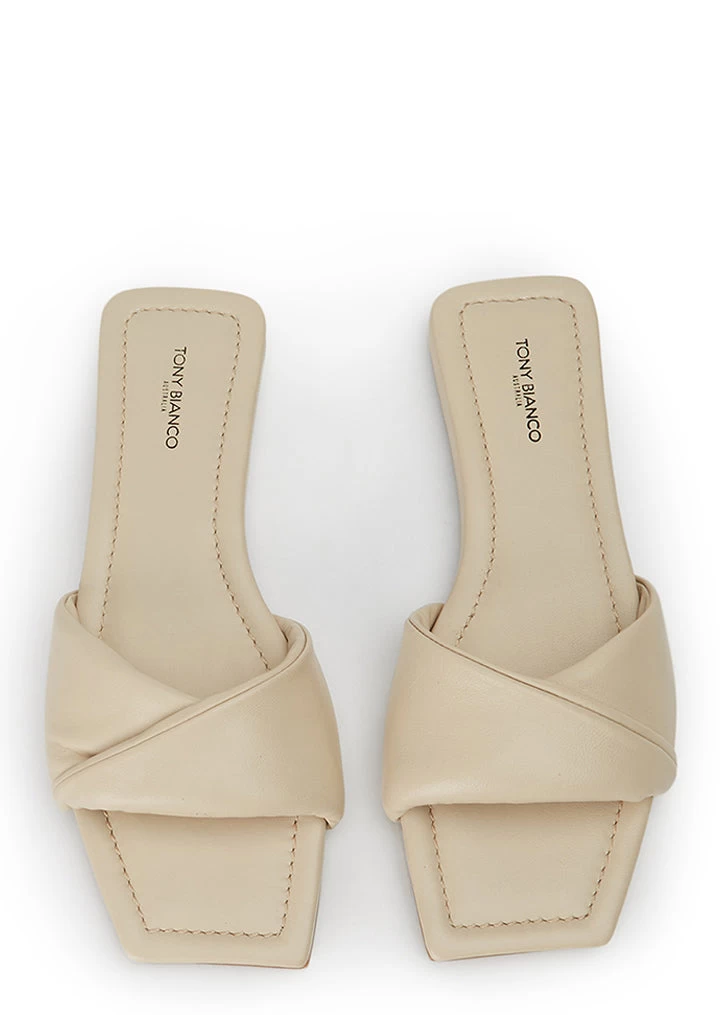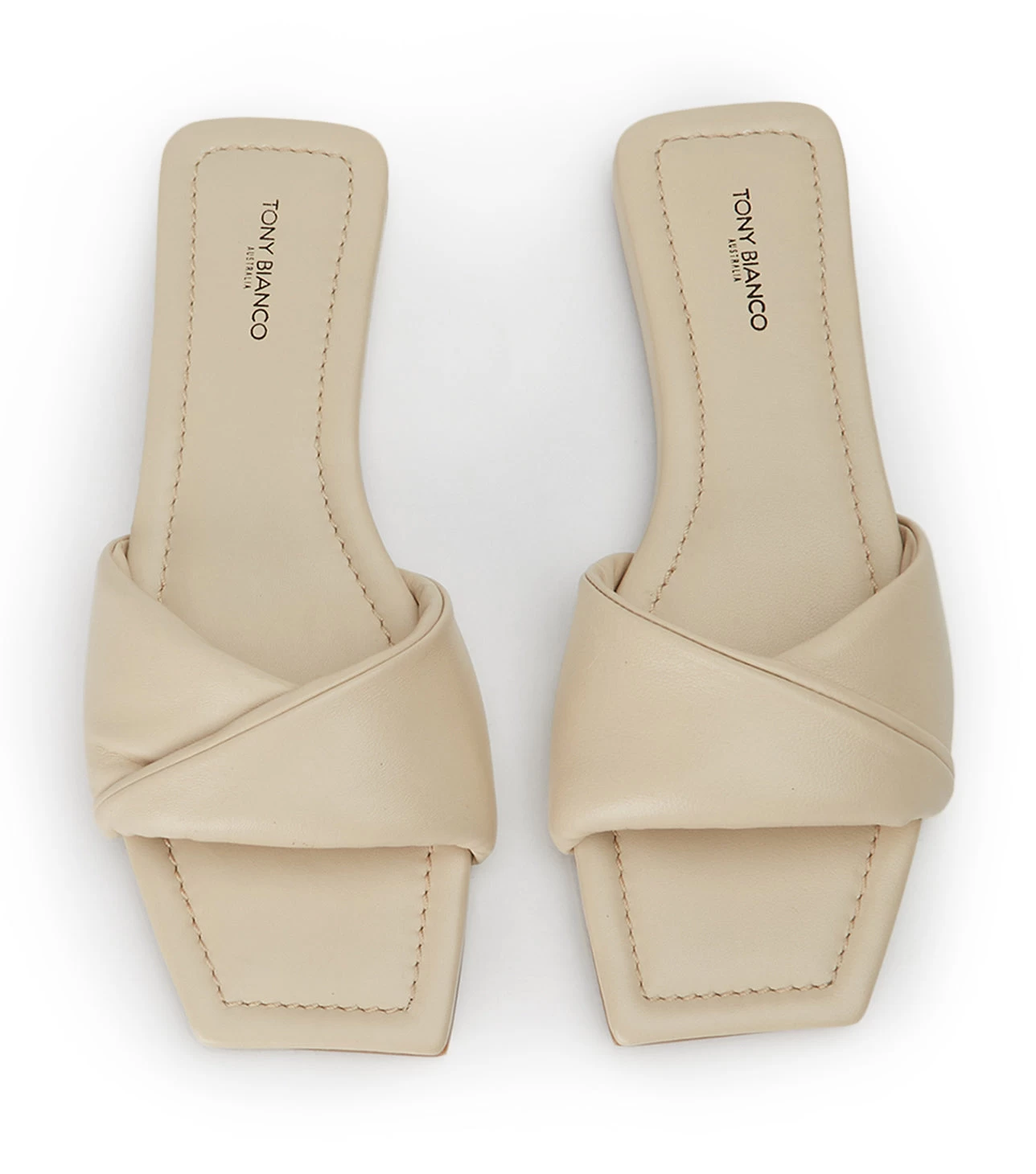 The statement is sophistication this season with Echo the slide sandals. Donning a cushioned leather foot bed, buttery smooth vanilla leather upper and clean squared-off toe, pair this with summer tailoring for a classic finish.