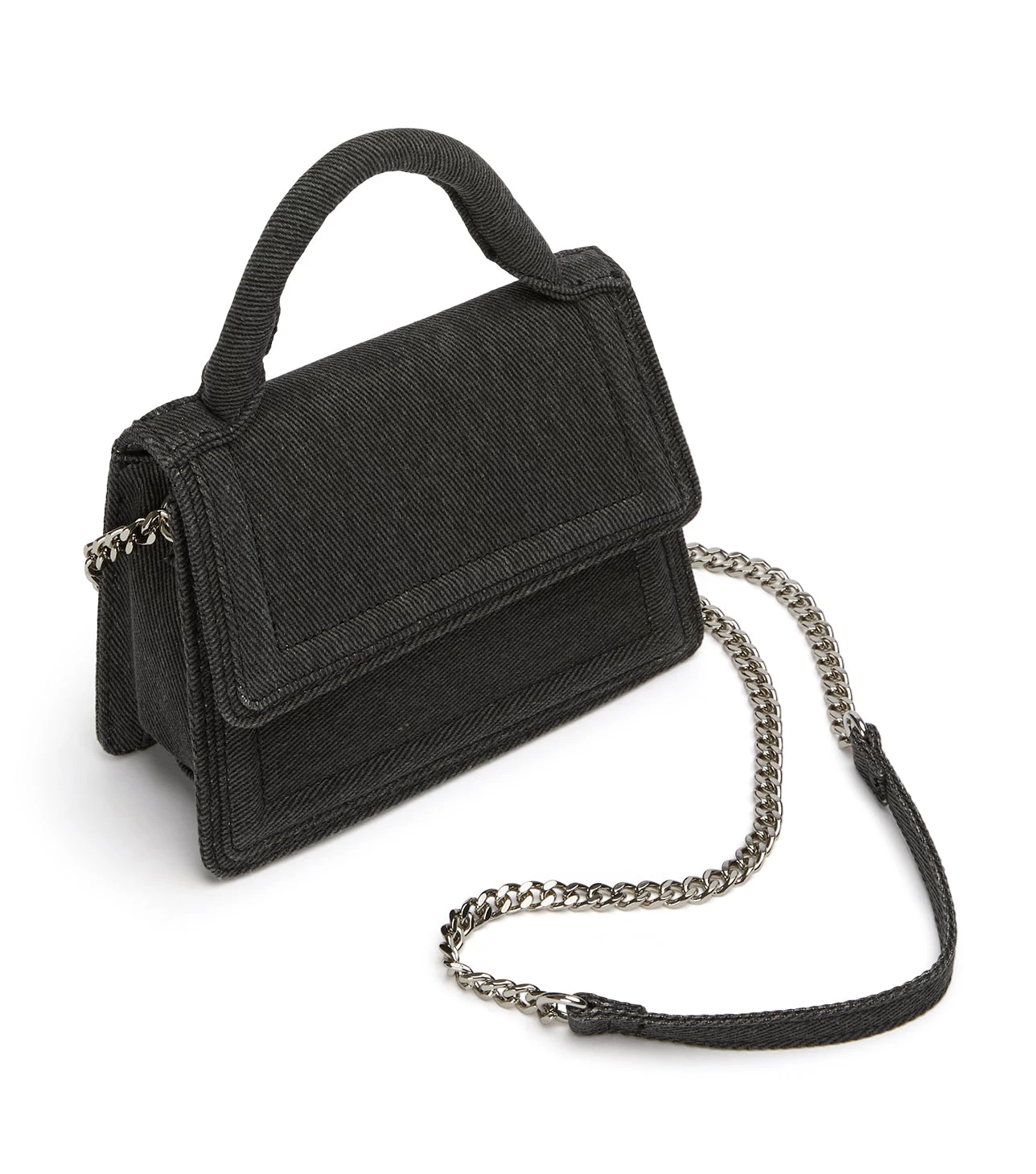 The cutest of them all is our mini structured canvas bag Ellie. Simplistic in design, this bag is versatile and features a removable strap which allows you to take her out on a day of running errands or to your next evening event.