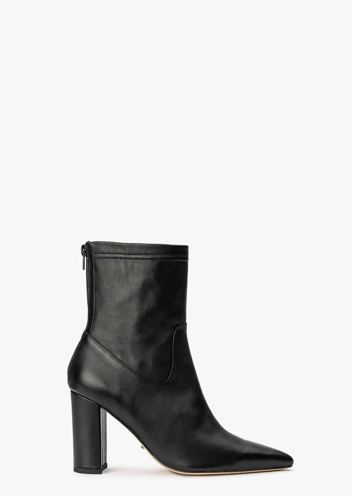 It’s smooth to touch with the Ellie leather ankle boots. With a buttery leather texture and classic block heel, this black ankle bootie is ultra chic and ready to enter your shoe collection.