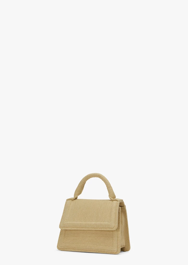 The cutest of them all is our mini structured canvas bag Ellie. Simplistic in design, this bag is versatile and features a removable strap which allows you to take her out on a day of running errands or to your next evening event.