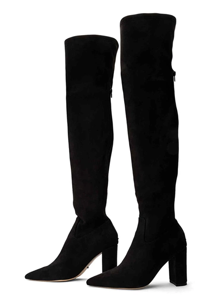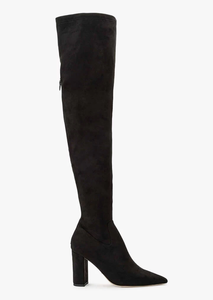 Reach new heights in the Estella over-the-knee stretch boots. This elevated thigh-high style dons a pointed toe, block heel & stretch calf to make these a chic addition to your collection. Pair with a mini or your favourite jeans for the ultimate tran-seasonal style.