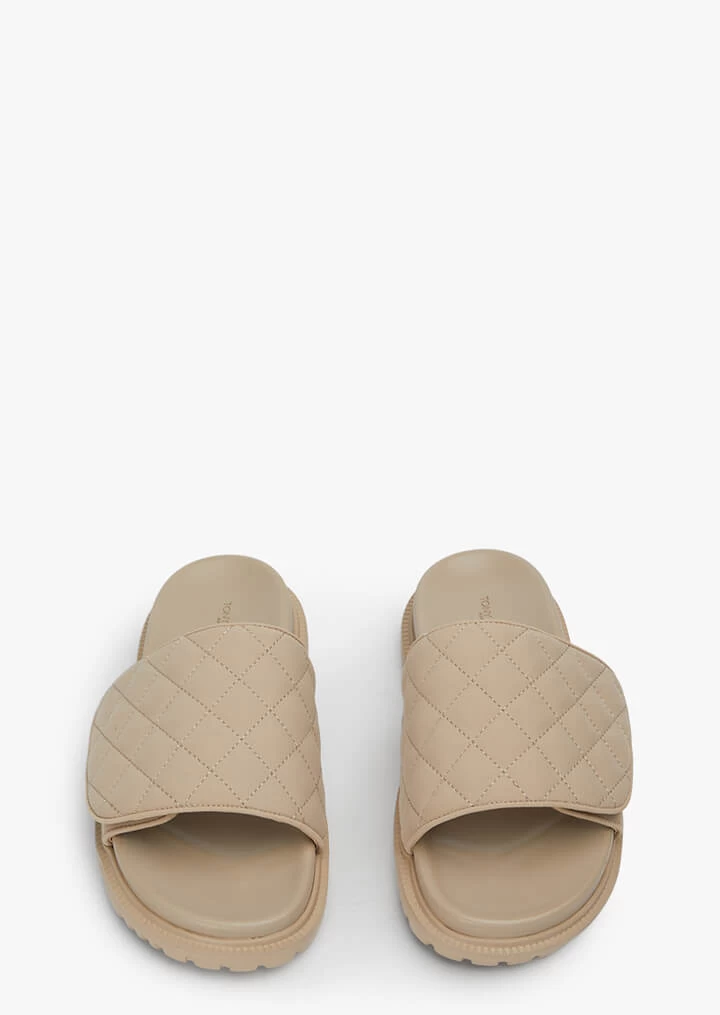 Your new Spring/Summer go-to slide is here, meet Firebird. With a low platform base and quilted adjustable strap across the foot, this sandal is perfect for long days by the beach or one full or running errands.
