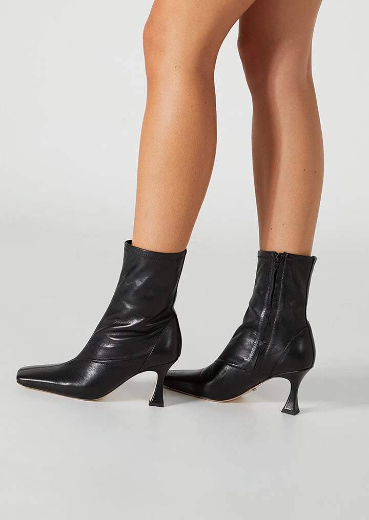 Don’t miss out on our Fomo ankle boot. Set to impress, this pared back design showcases an extended square toe-shape with a fitted upper, subtle stitch detailing and an inner zip to easily slip on and go. Finished with a statement hourglass shaped heel for a unique point of difference.