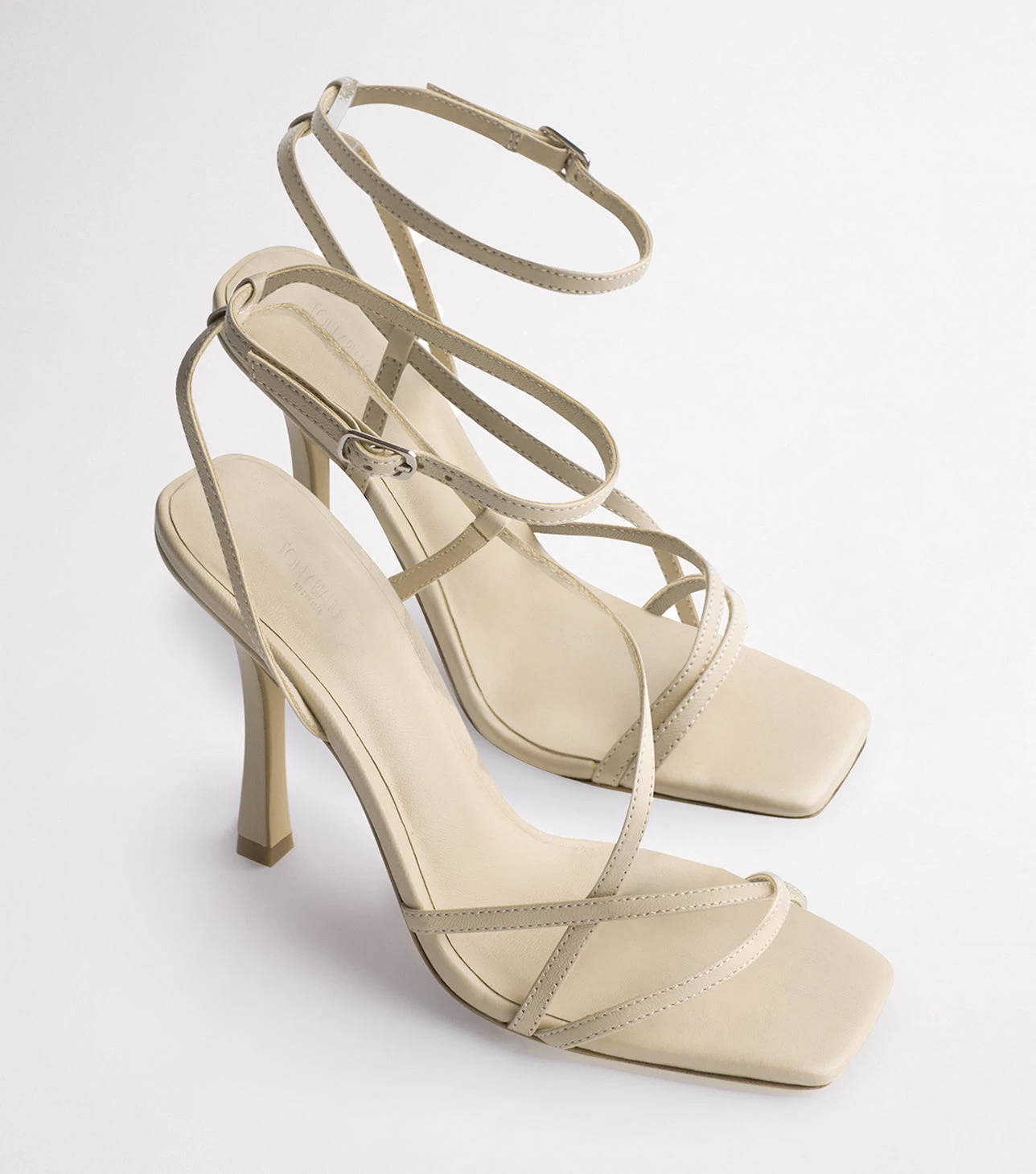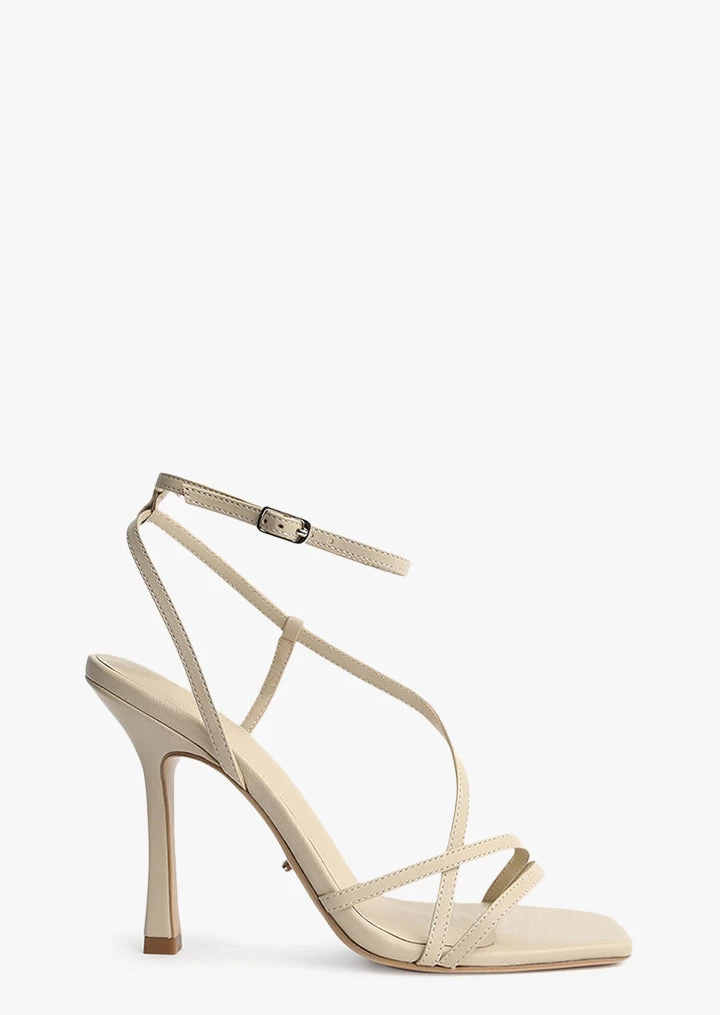Strap yourself into new season style with the Franci heel. Encased with thin, slimming straps, this design features an on-trend squared toe-shape, a padded foot-bed for extra comfort, wrap-around ankle straps and is finished with a silver toned buckle. Set atop a 10.5cm stiletto heel.