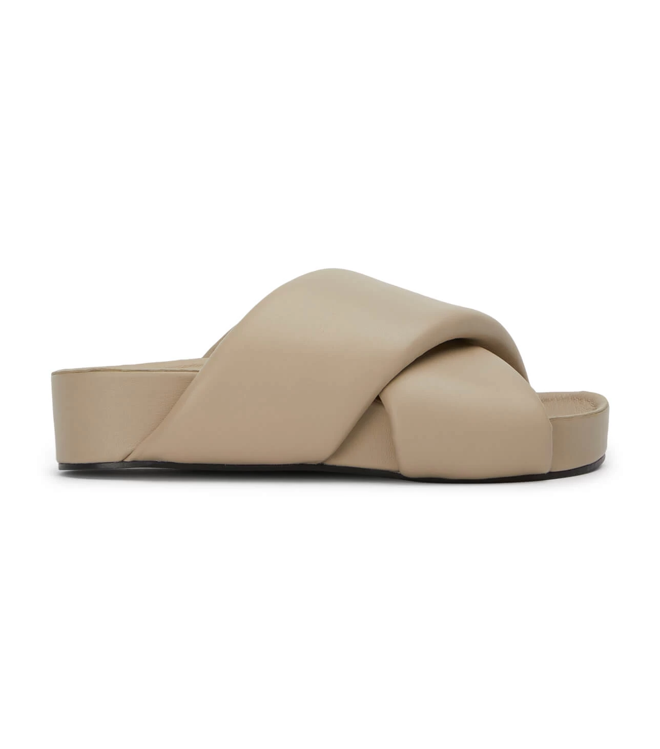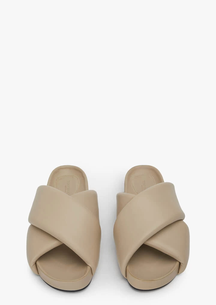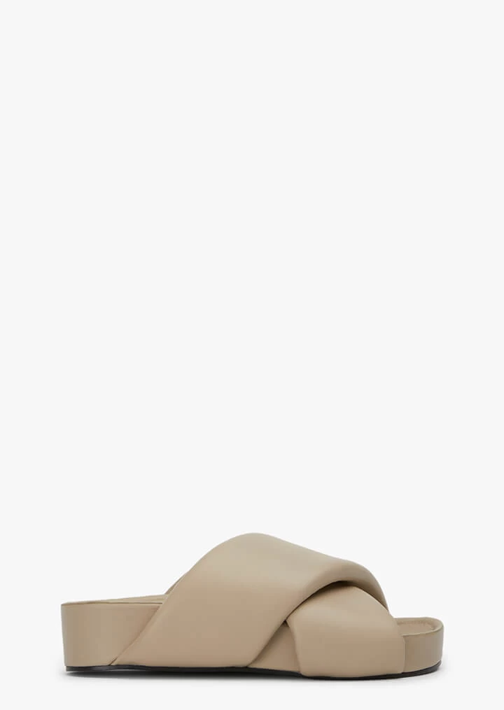 A little bit of height never goes astray and so your love for Gem is inevitable. Crafted from our buttery beige leather with thick upper crossover straps, simply slide on and be on your way.