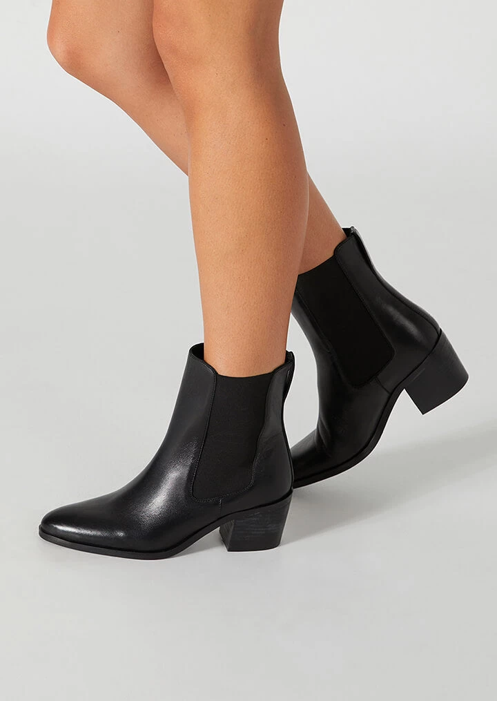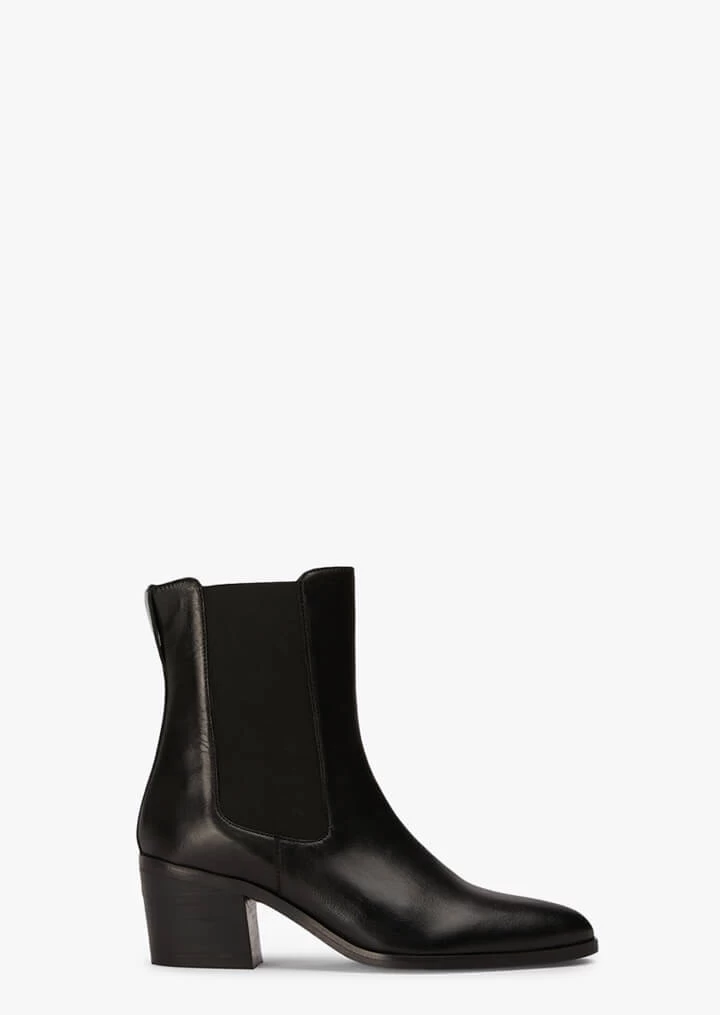 Introducing Glima. A modern take on the classic ankle boot, featuring an on-trend almond toe, side gussets and a block heel for extra comfort. Made with our signature black nappa leather, you’ll be loving these boots for years to come.