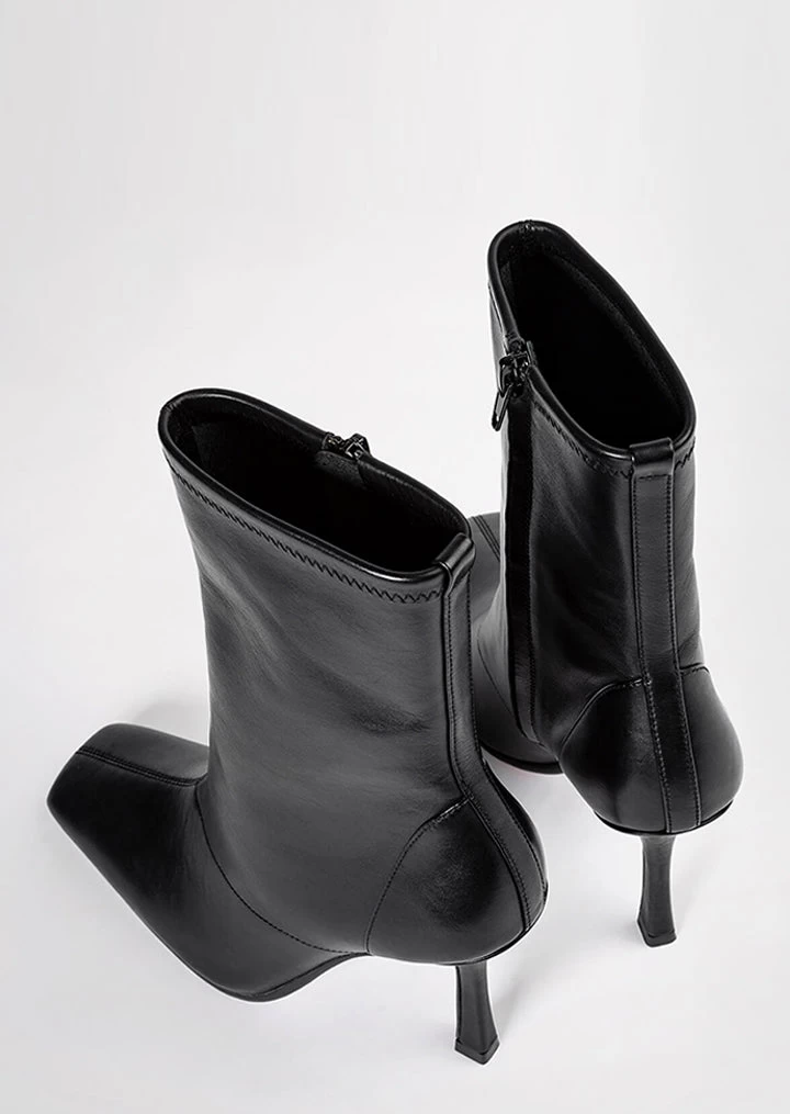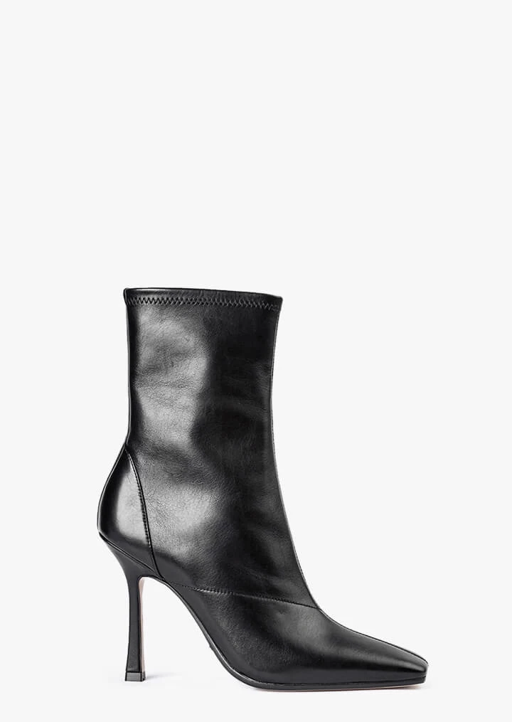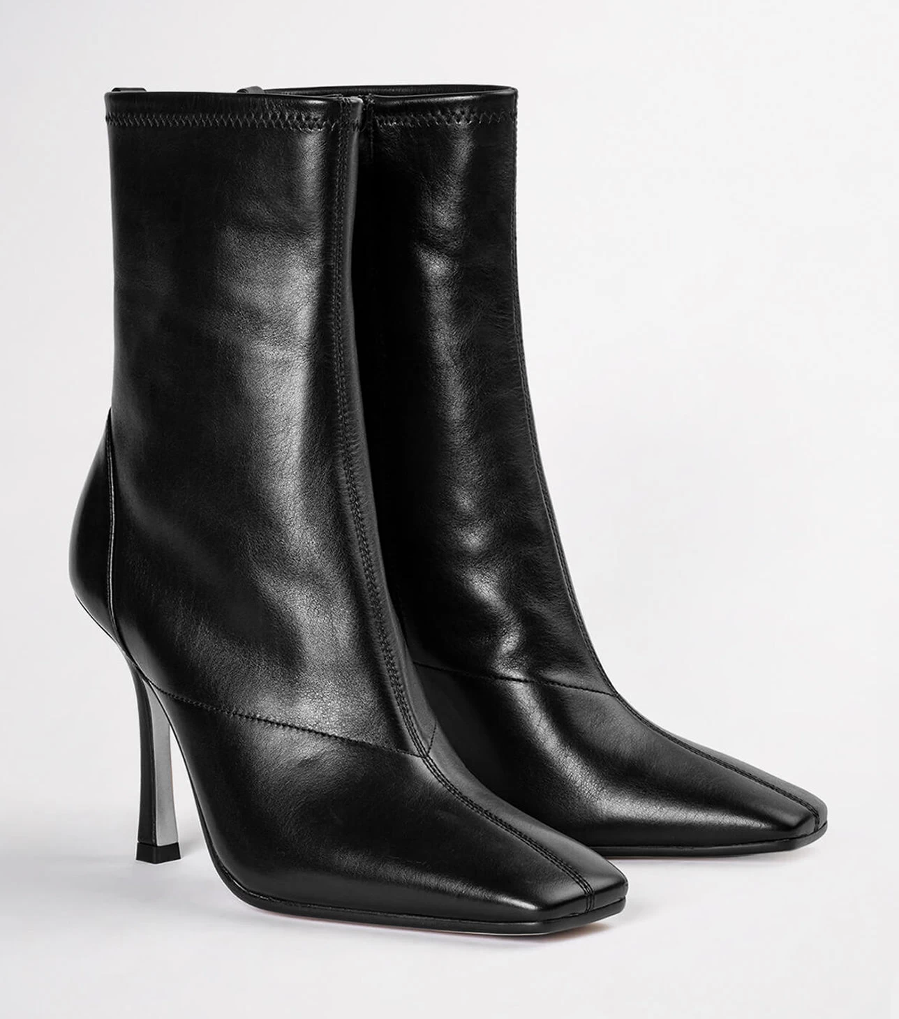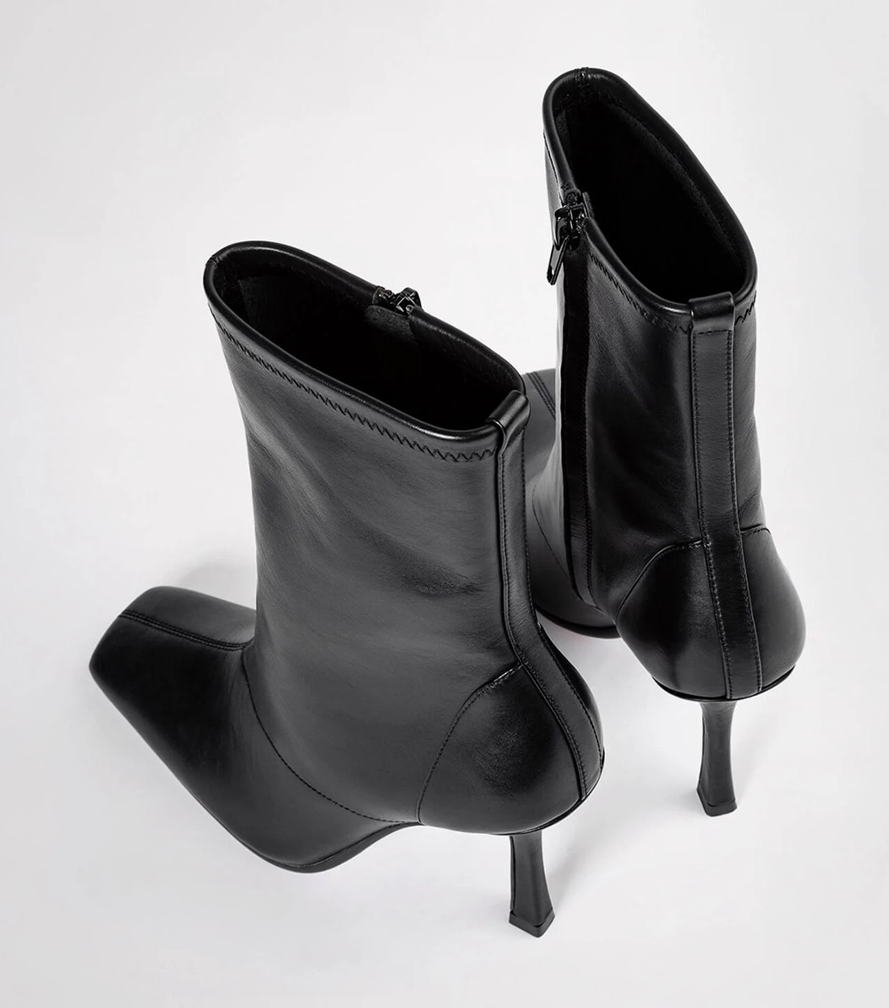 Fancy another little black boot? The Halsey ankle boot is not like the others! Boasting a soft black leather exterior, this bootie features an on-trend squared toe shape, a matching rear zip to the ankle for an easy, slip-on-and-go wear and is finished with a 10.5cm stiletto heel. Pair effortlessly with cropped denim jeans.