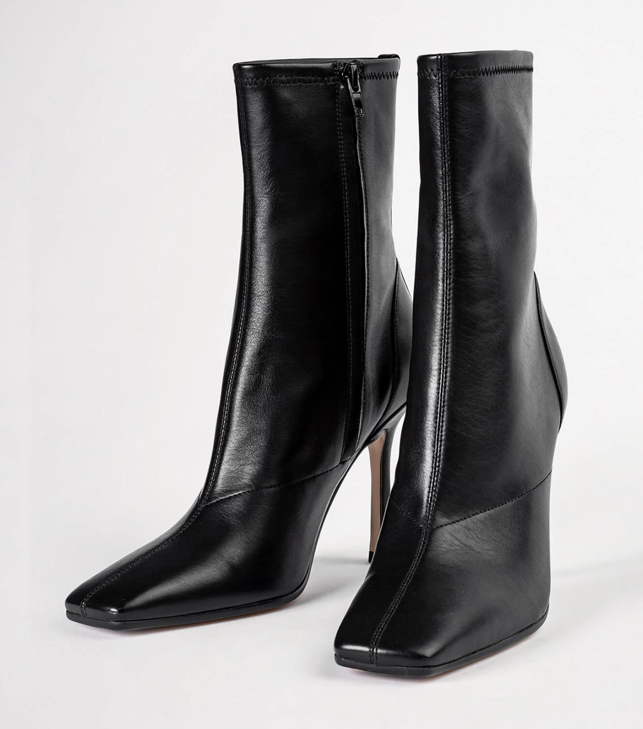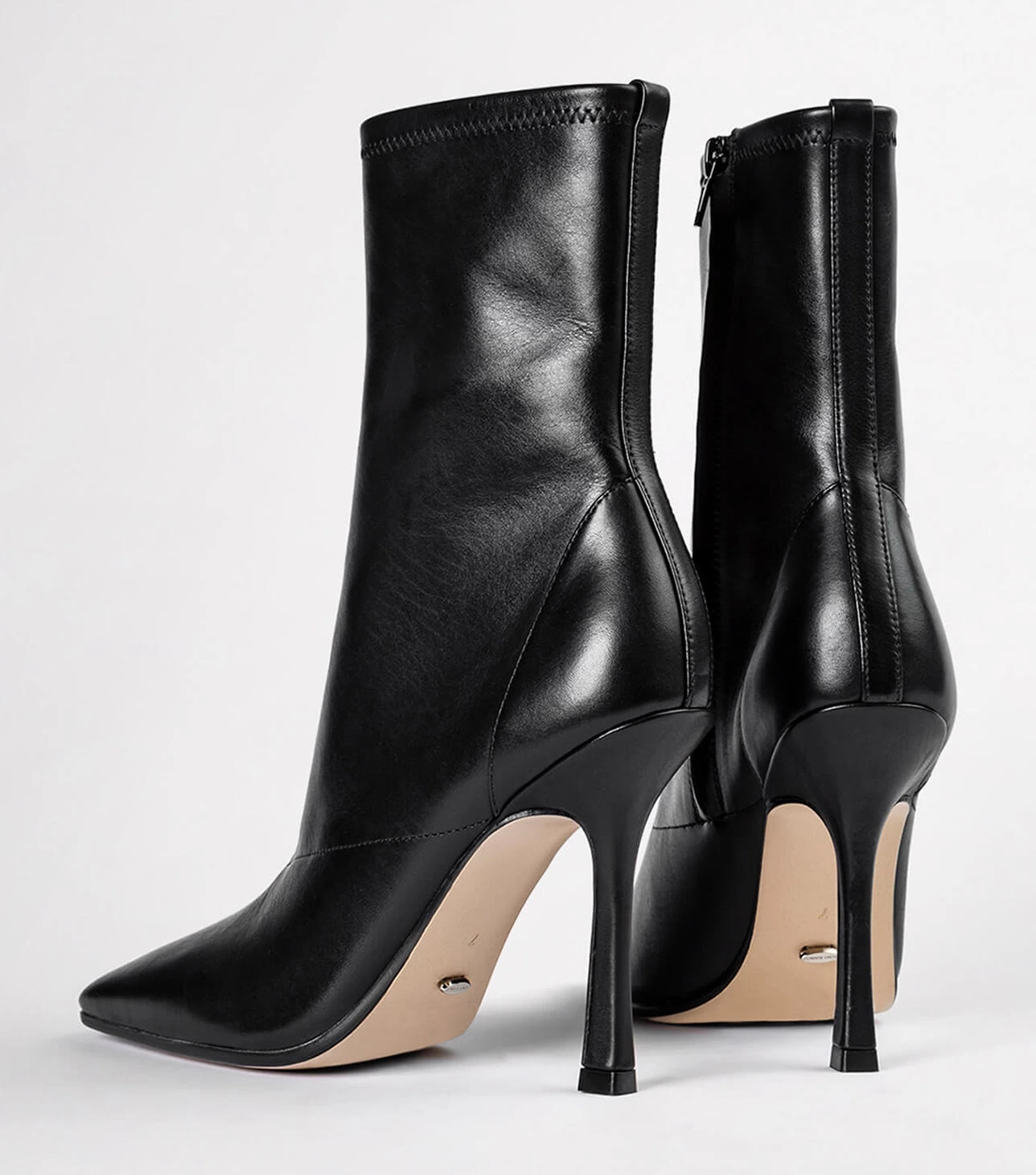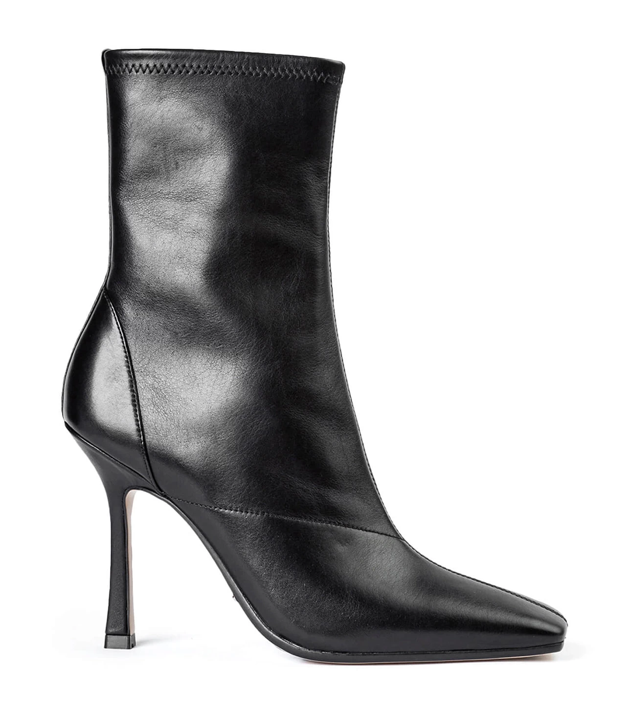 Fancy another little black boot? The Halsey ankle boot is not like the others! Boasting a soft black leather exterior, this bootie features an on-trend squared toe shape, a matching rear zip to the ankle for an easy, slip-on-and-go wear and is finished with a 10.5cm stiletto heel. Pair effortlessly with cropped denim jeans.