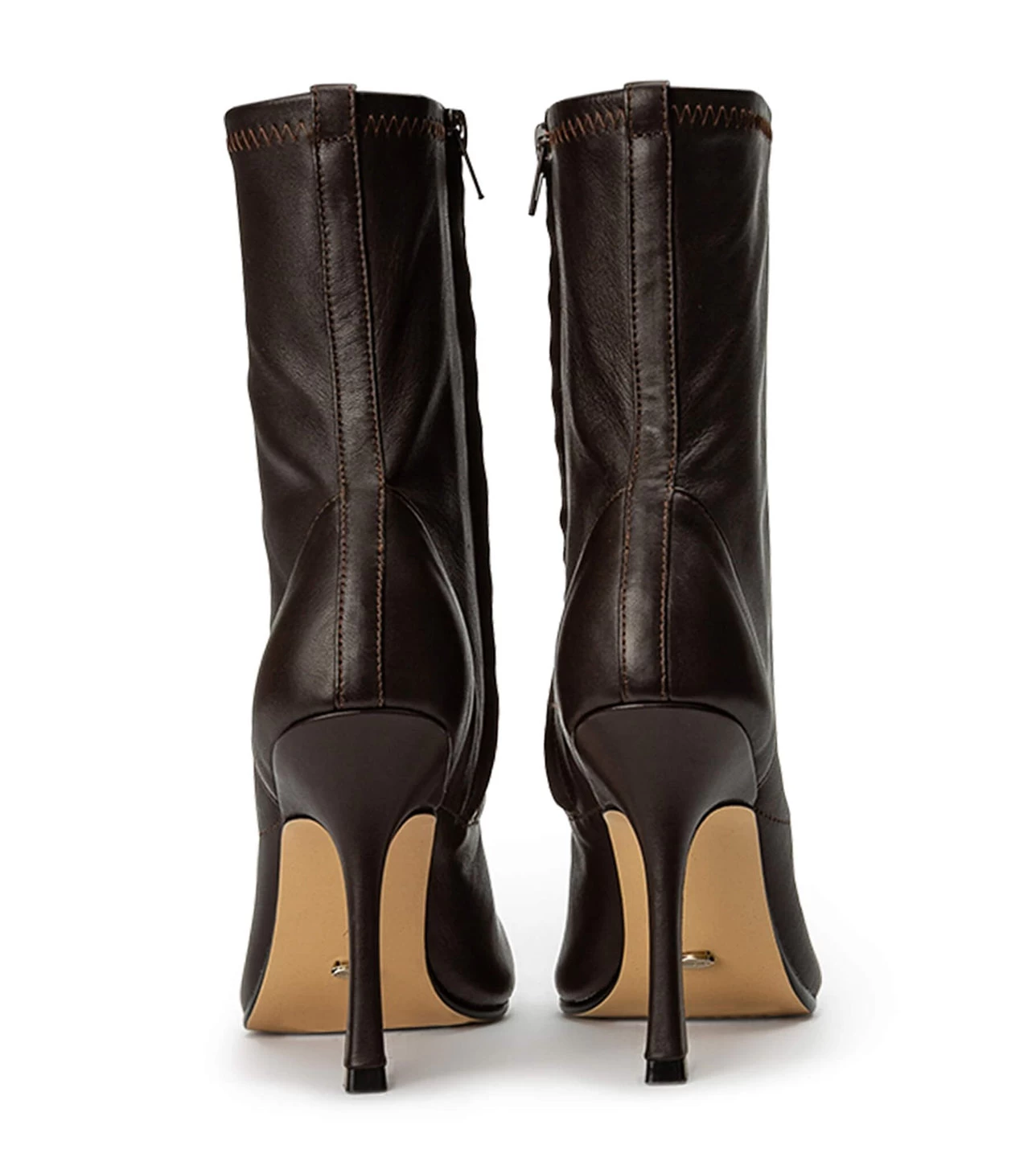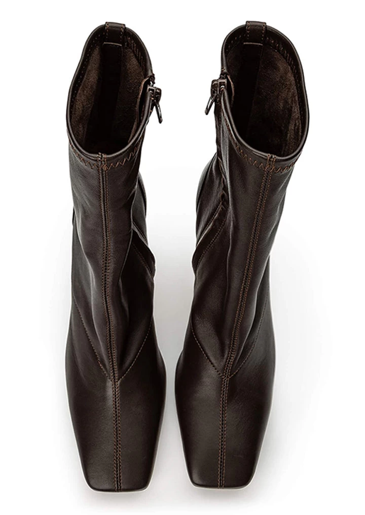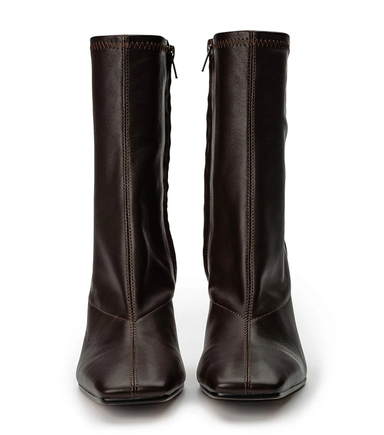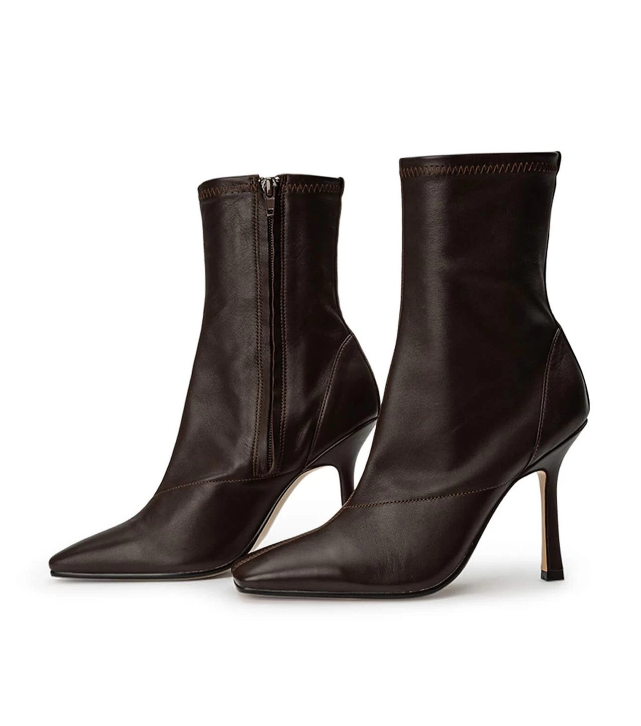 The sweeter the better with our new rich Halsey chocolate nappa leather – boasting buttery soft leather, this ankle boot features an on-trend squared toe shape, a sleek fitted upper, a matching rear zip to the ankle for an easy, slip-on-and-go wear. Pair effortlessly with cropped denim jeans.