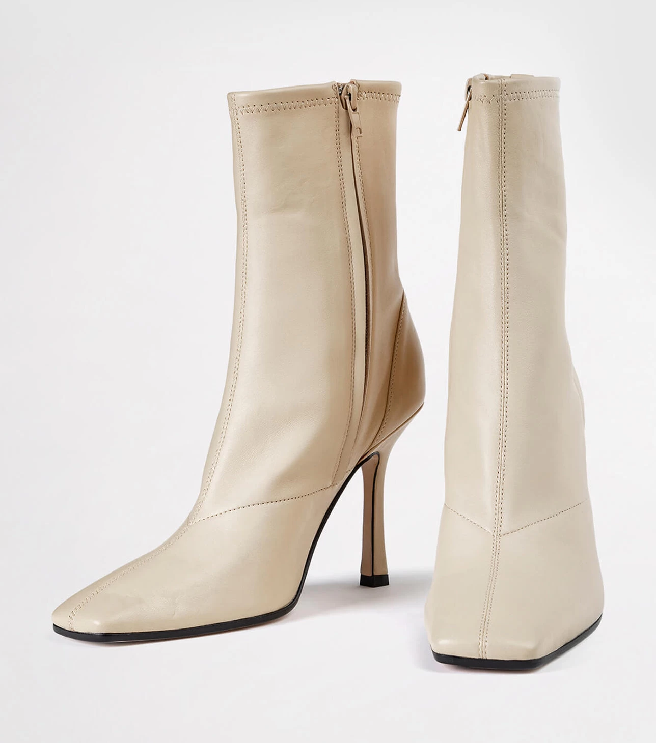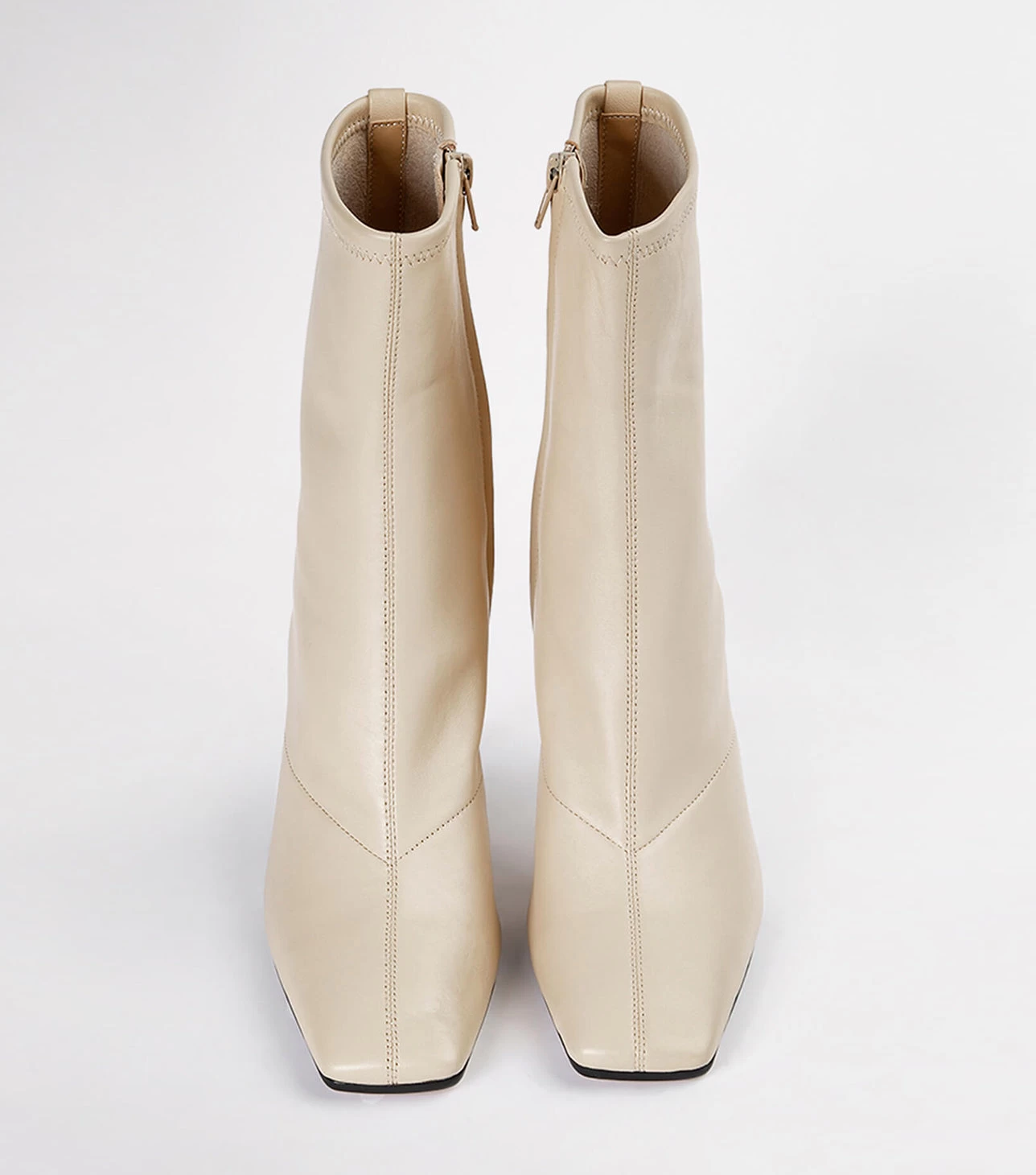 Break away from black this season with the Halsey in dove jewel – boasting a warm vanilla exterior, this ankle boot features an on-trend squared toe shape, a soft genuine leather and a matching rear zip to the ankle for an easy, slip-on-and-go wear. Pair effortlessly with cropped denim jeans.