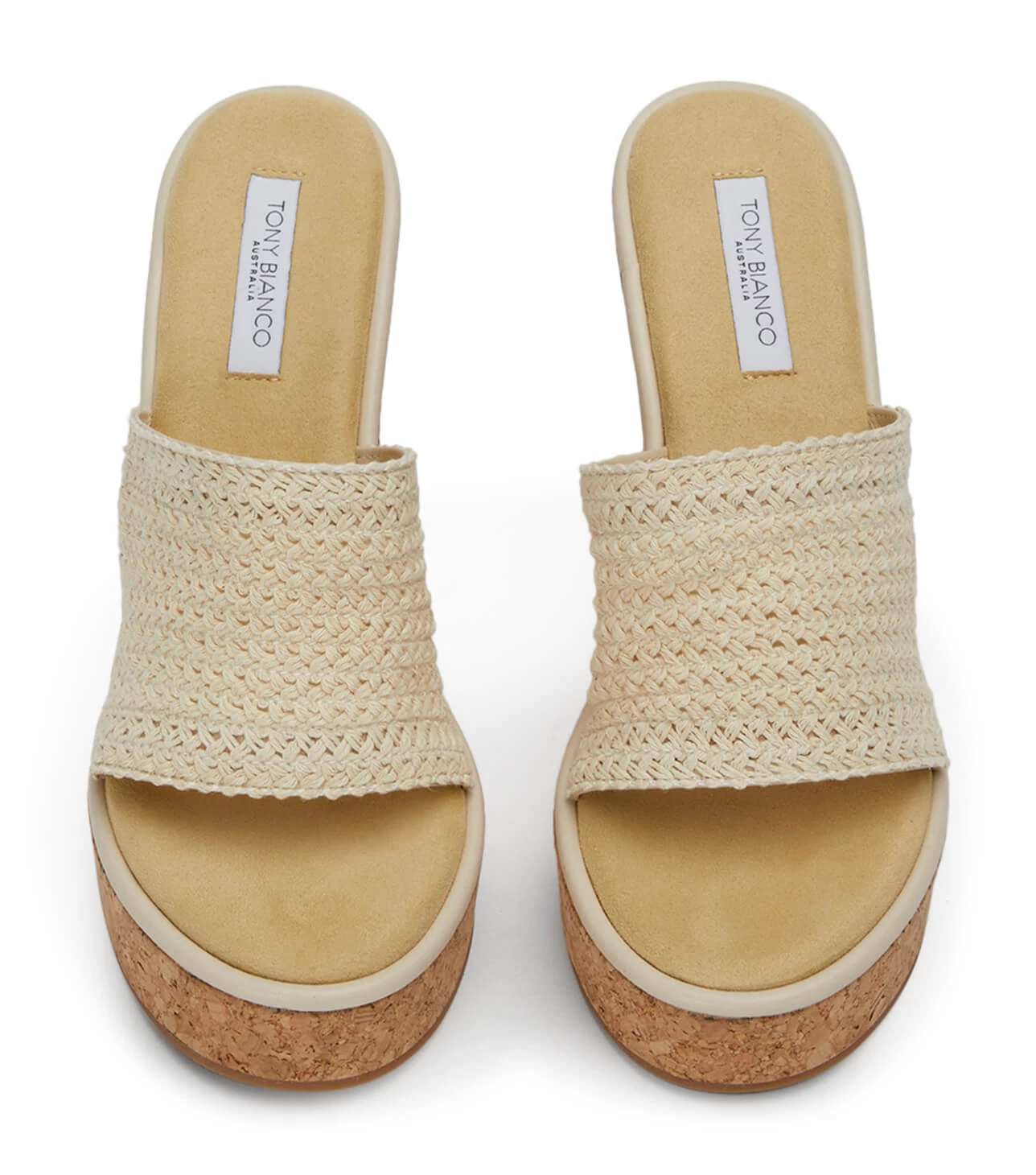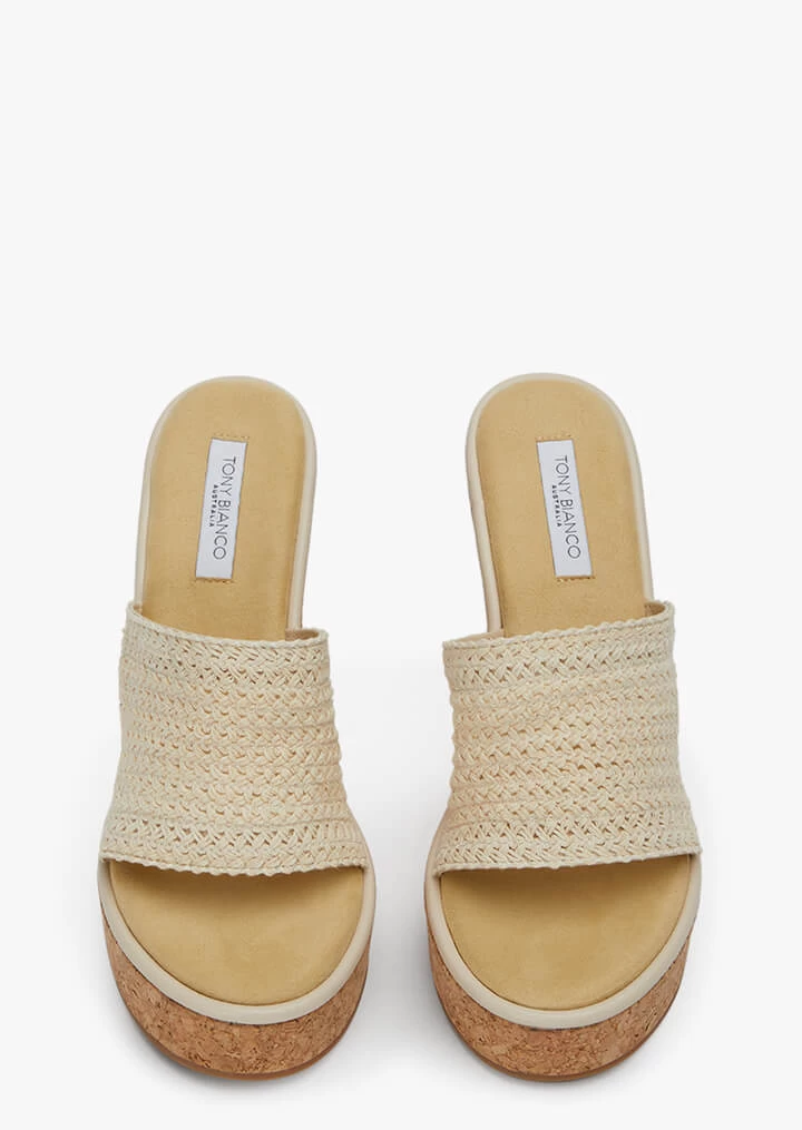 Meet Harlow, a simplistic wedge heel providing versatility and comfort to your Summer wardrobe this season. Features a wide upper natural crochet strap and ultra high wedge heel.