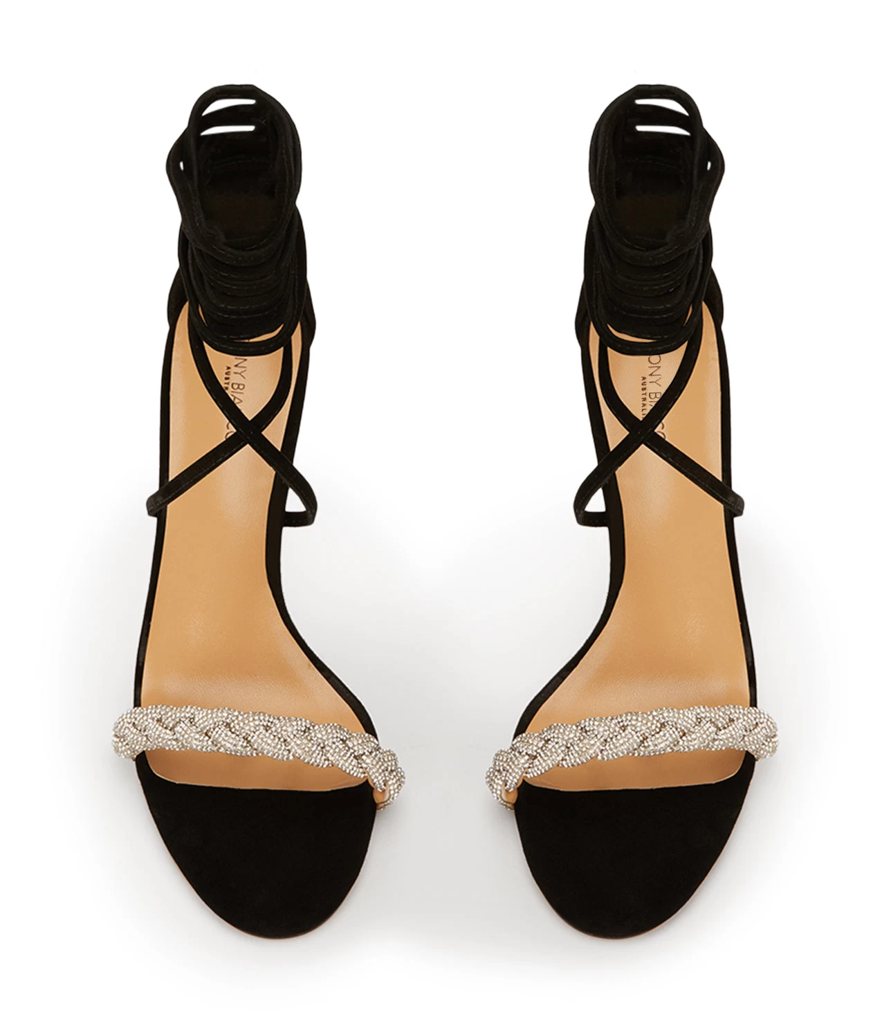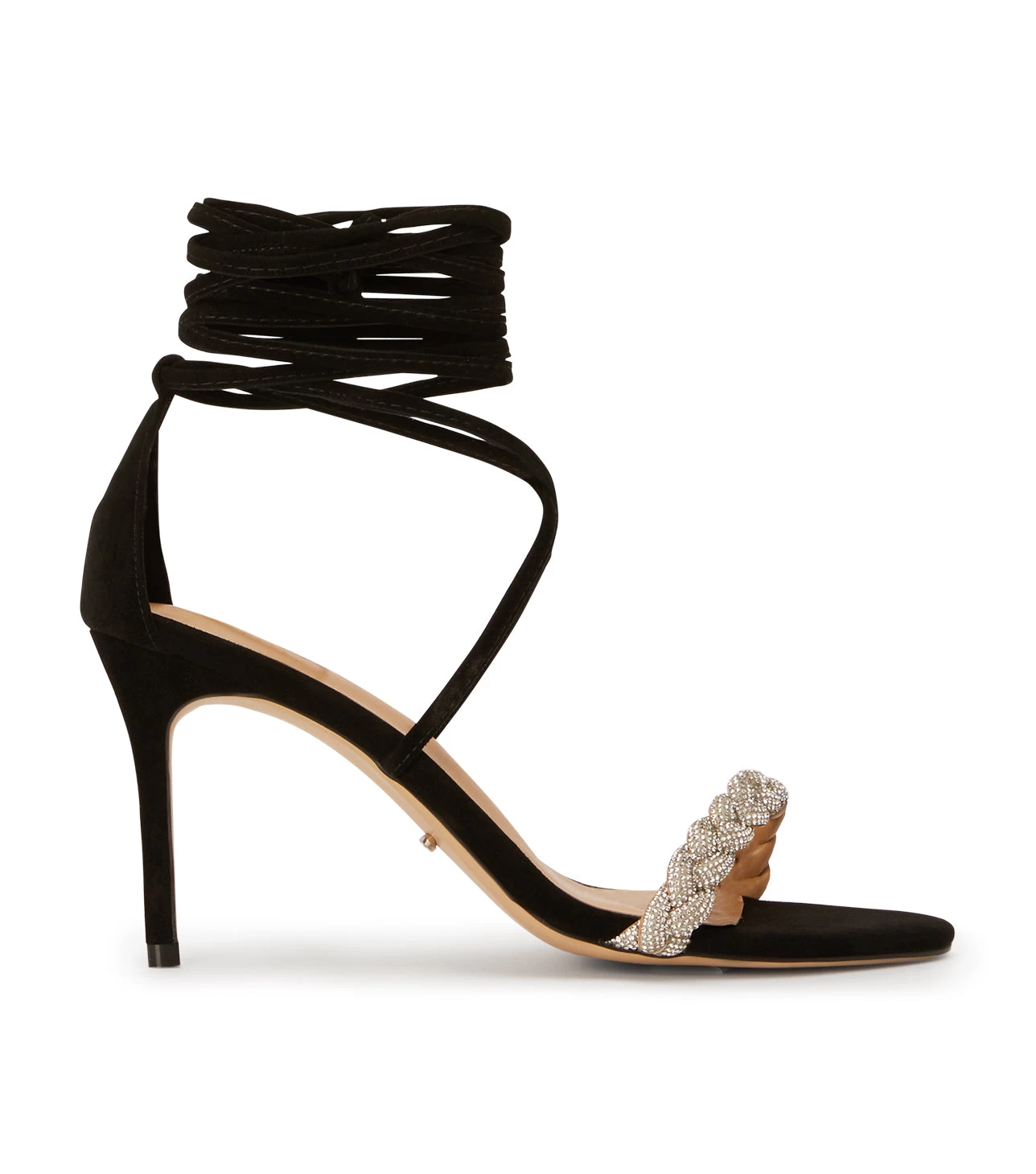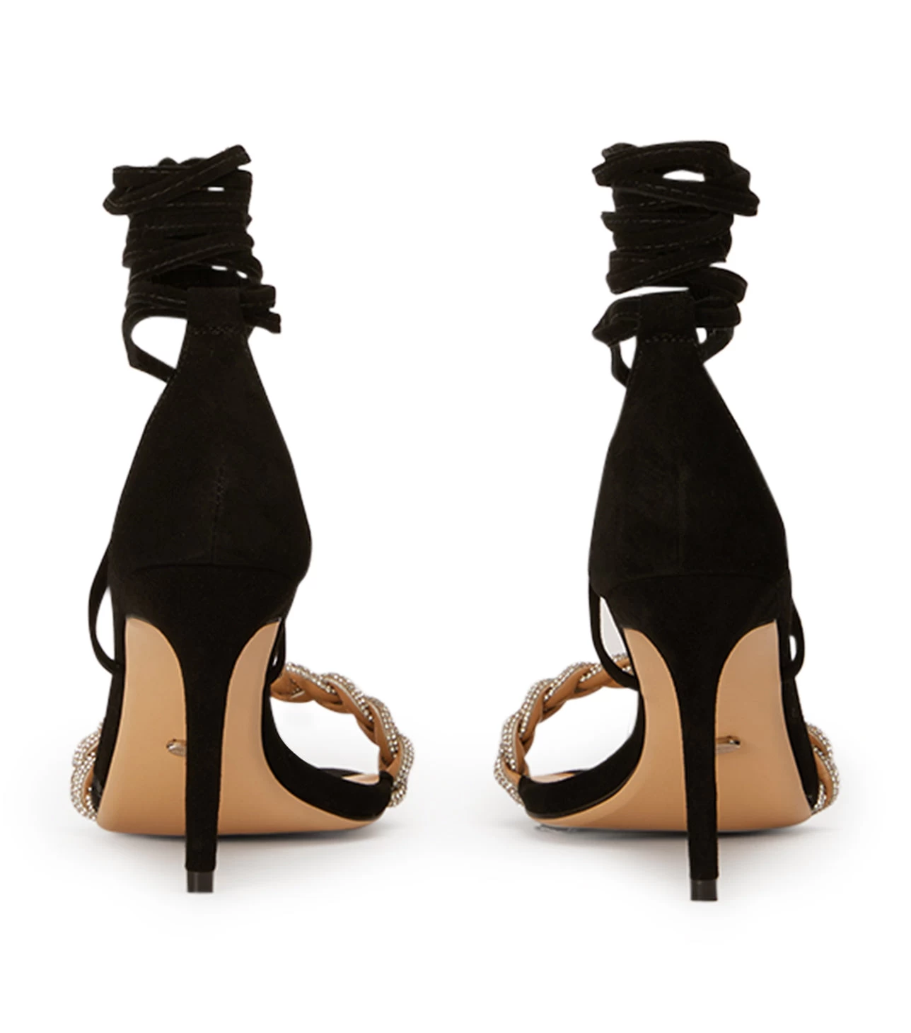 Make an entrance like no other with our Henley strappy heels. Featuring a smooth black suede body, a stand-out plaited diamante upper and a slender stiletto heel for all night partying. Finished with lace up ankle straps.