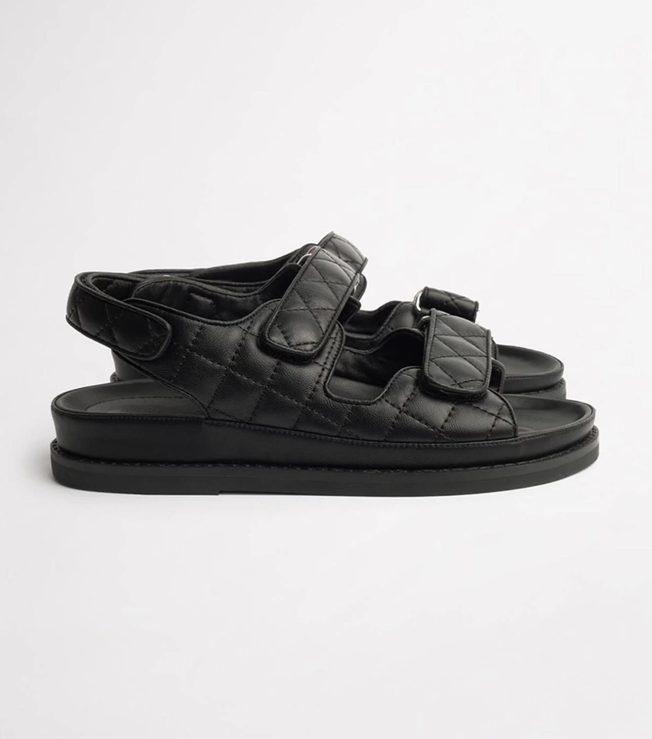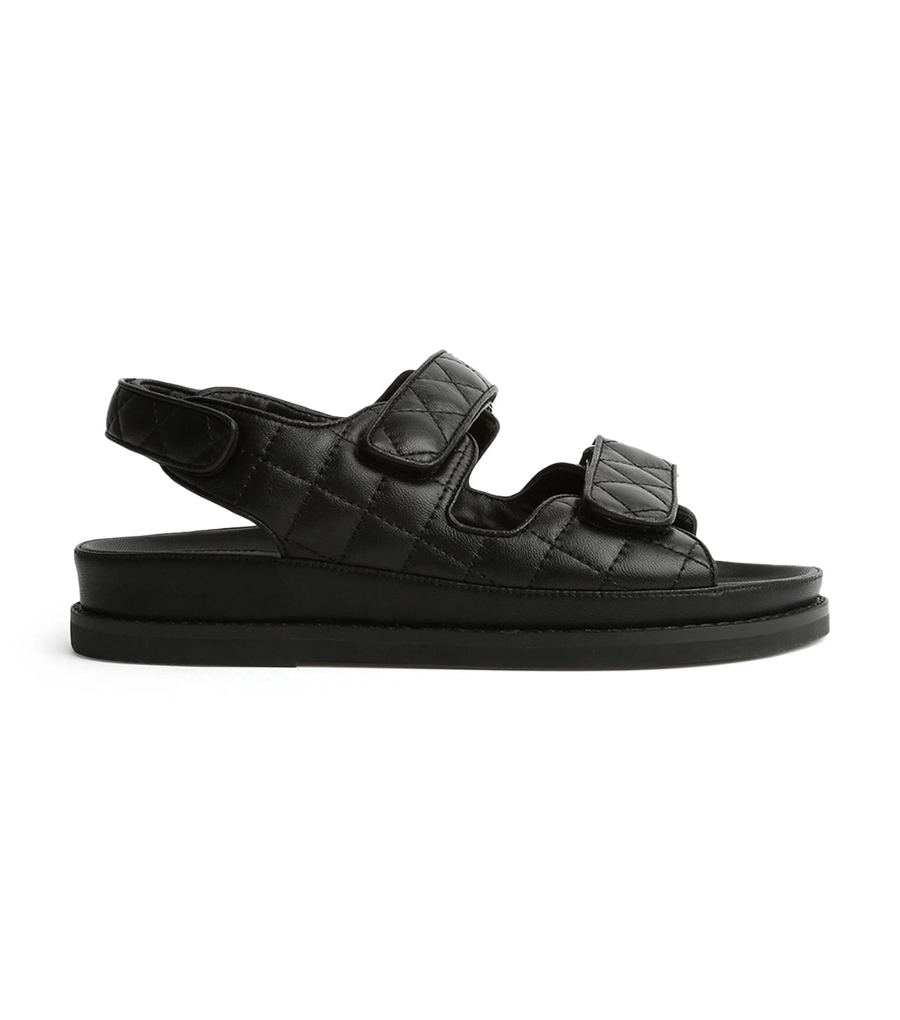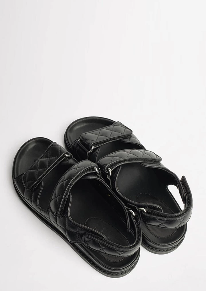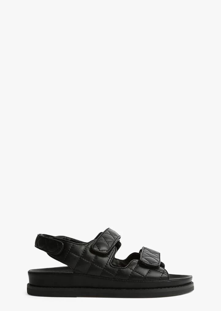 Meet our latest down-time must have, the Hiranni flat sandals. Constructed with a cushioned foot-bed and thick cross-foot adjustable velcro straps, the Hiranni features quilted detailing, alongside an exposed sole, leather upper and all new leather lining. The perfect off-duty all-rounder that you won’t want to take off.