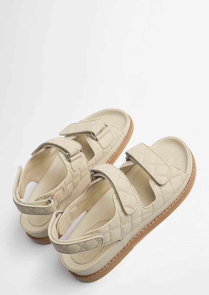 Meet our latest down-time must have, the Hiranni flat sandals. Constructed with a cushioned foot-bed and thick cross-foot velcro straps, the Hiranni features adjustable straps and quilted detailing, alongside an exposed sole, leather upper and all new leather lining. The perfect off-duty all-rounder that you won’t want to take off.