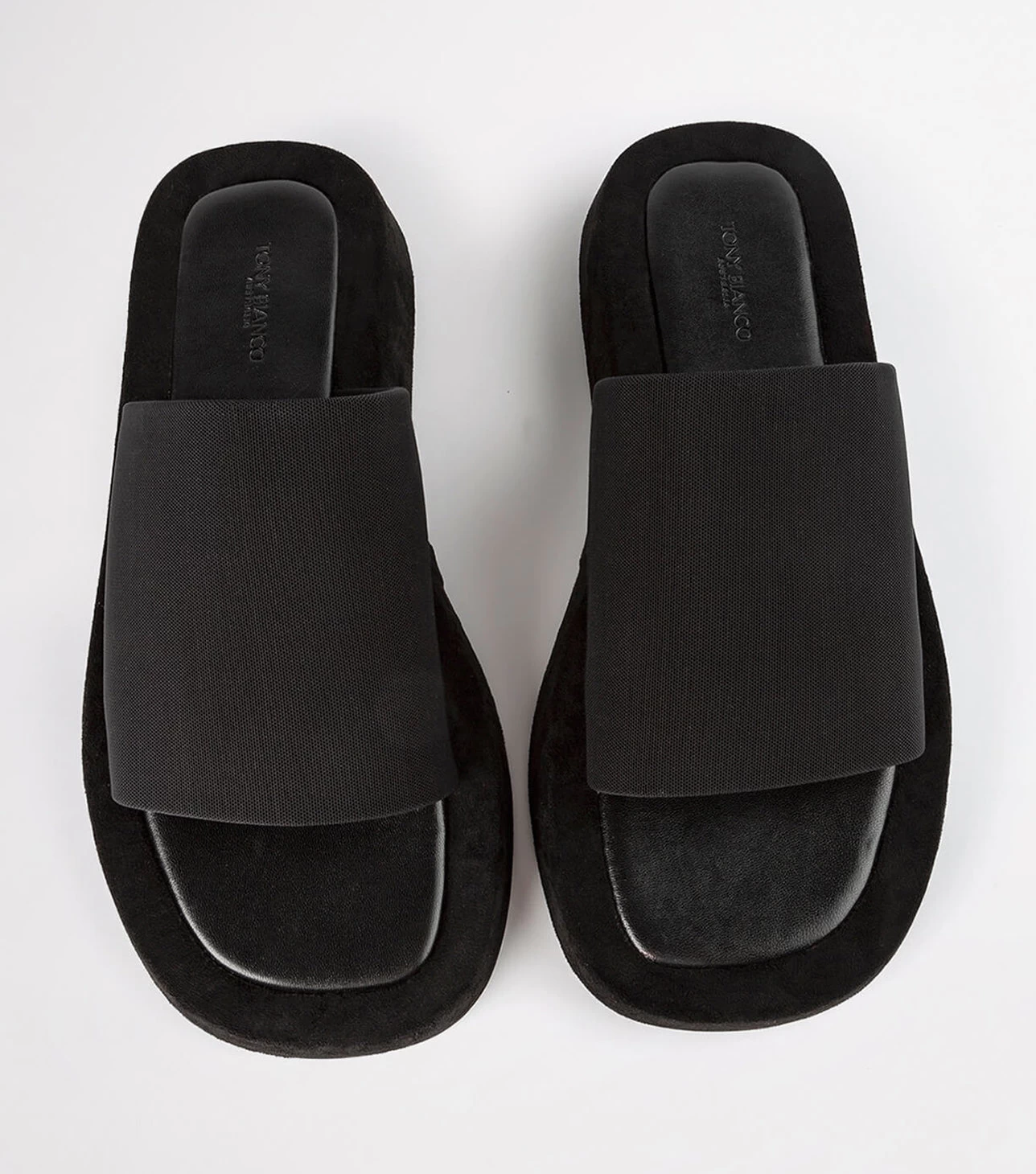 We’re know you love effortless style. Cue our Isabel slides in classic black. Featuring an elevated platform foot bed, with simple fabric strap design, they’re the perfect Summer sandal for the minimalist.