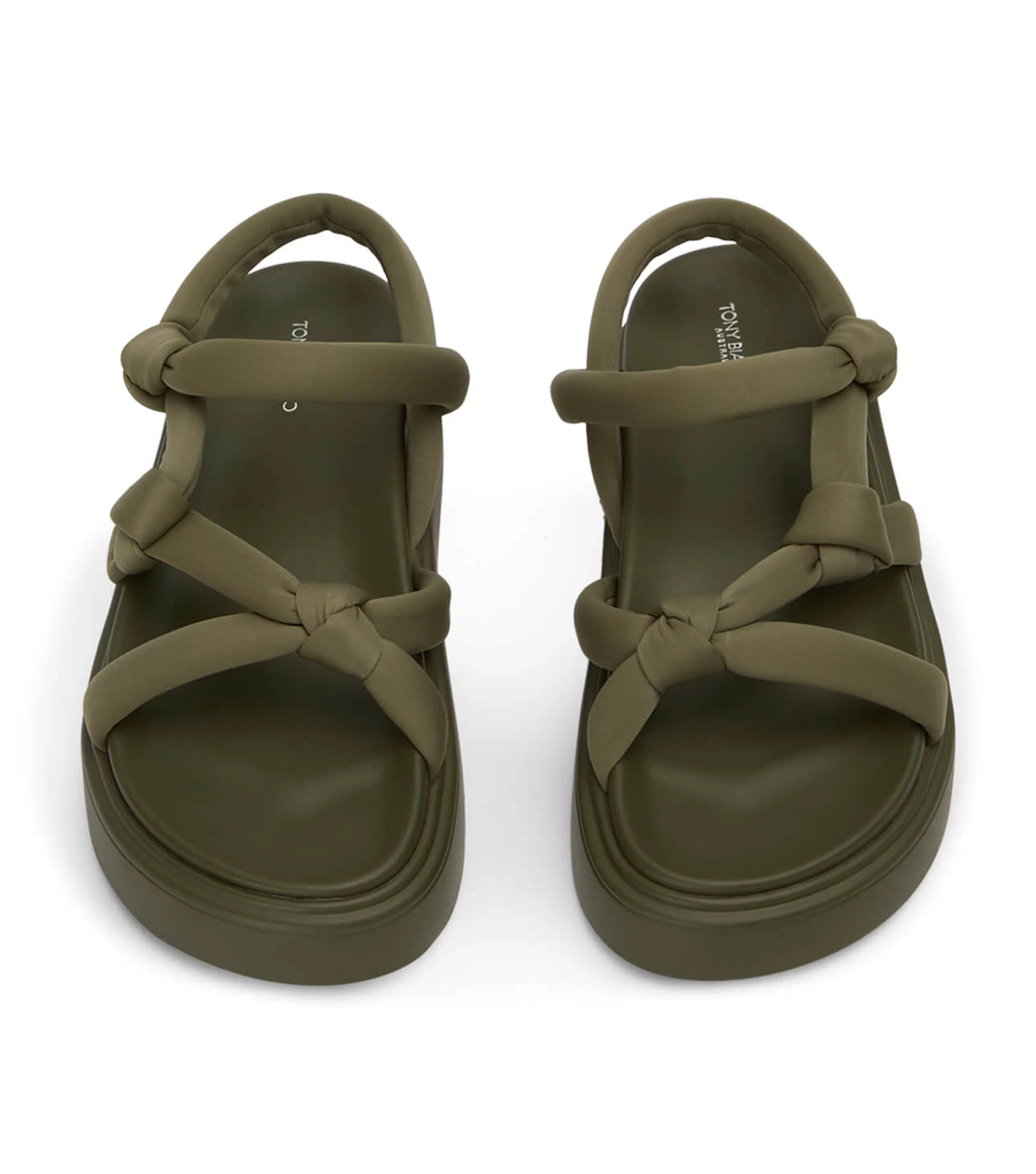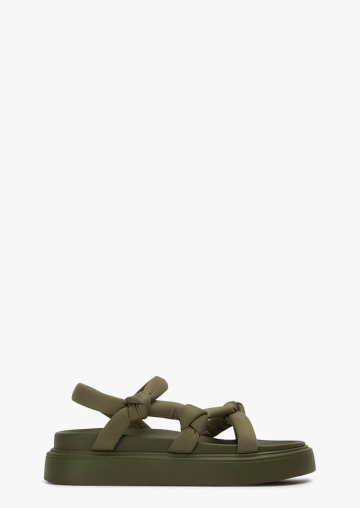 Elevate your sandals collection with Jasper. This flatform sandal features a strappy scuba upper with ankle support and twisted knot aesthetic throughout.