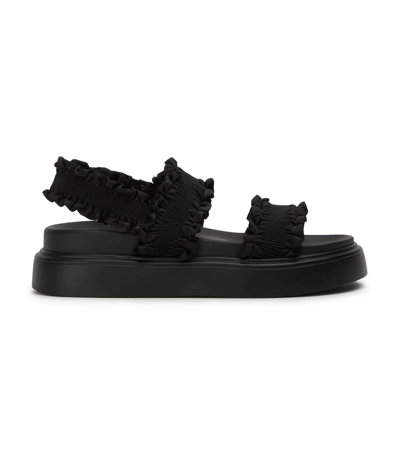 Keep it fun and flirty this Summer with Jerry. This flatform sandal features ruffled upper straps and will no doubt look darling no matter how you style it.
