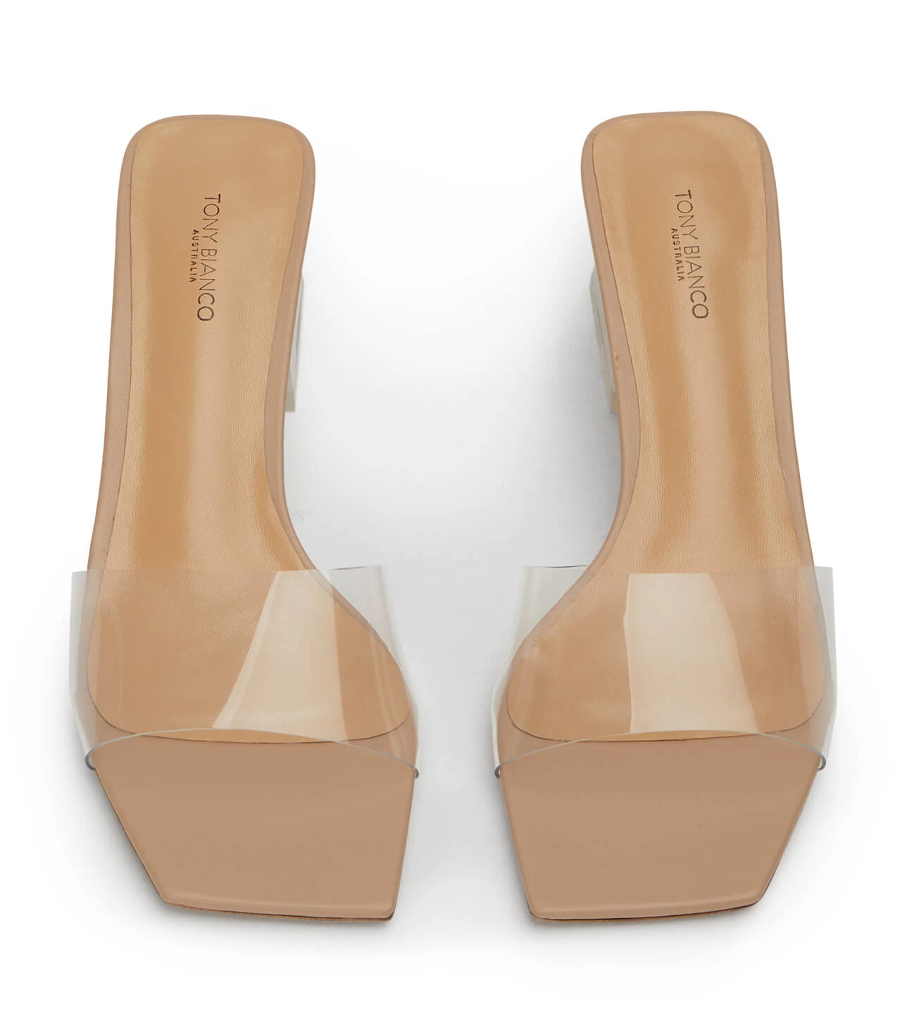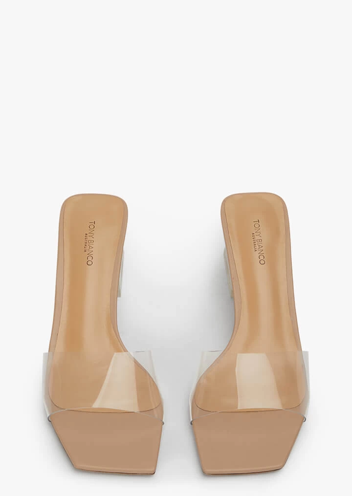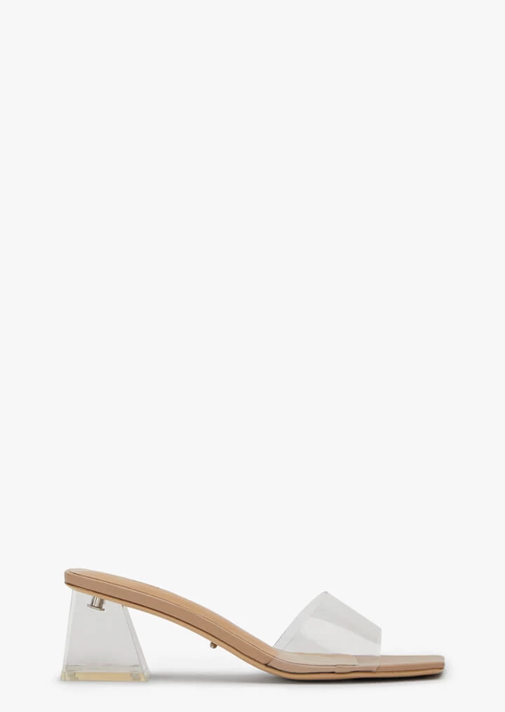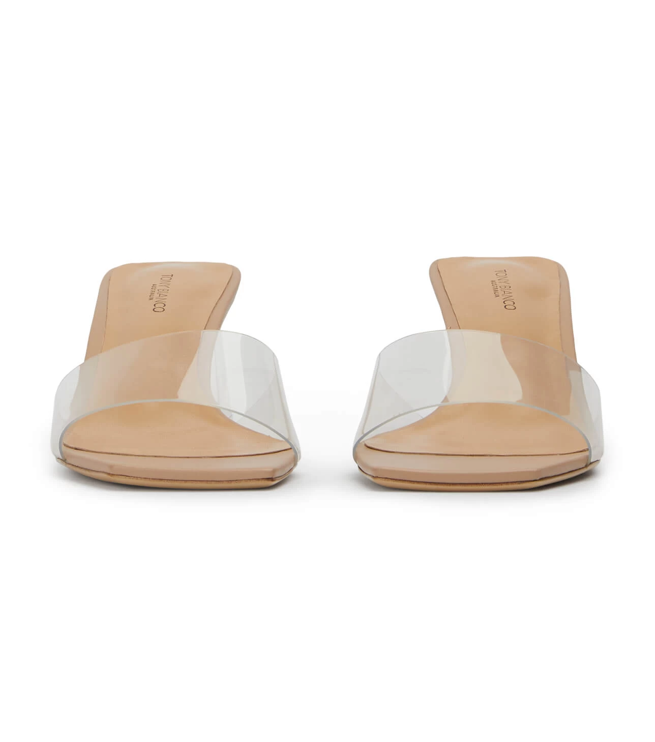 Modern and sleek, Kamira is a must-have timeless mule. Designed with a clear upper strap, modest asymmetric block heel and squared open toe, this style will effortlessly work its way into your wardrobe.