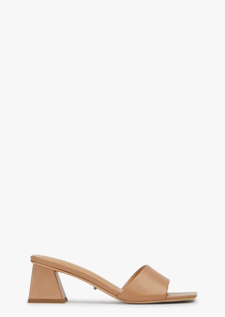 Modern and sleek, Kamira is a must-have timeless mule. Designed with a classic leather upper, modest asymmetric block heel and squared open toe, this style will effortlessly work its way into your wardrobe.