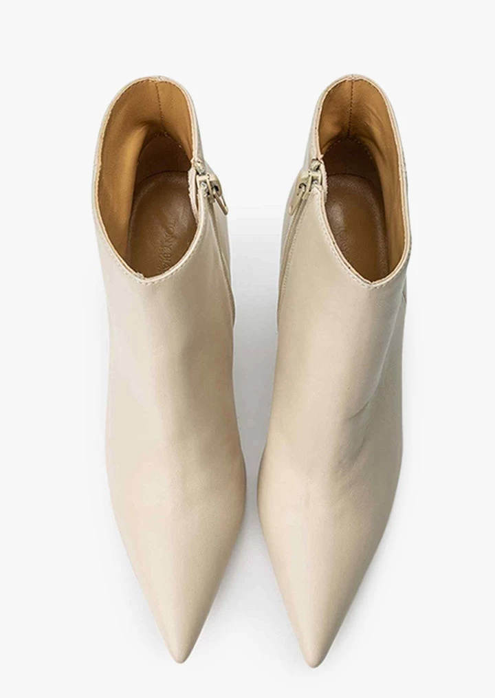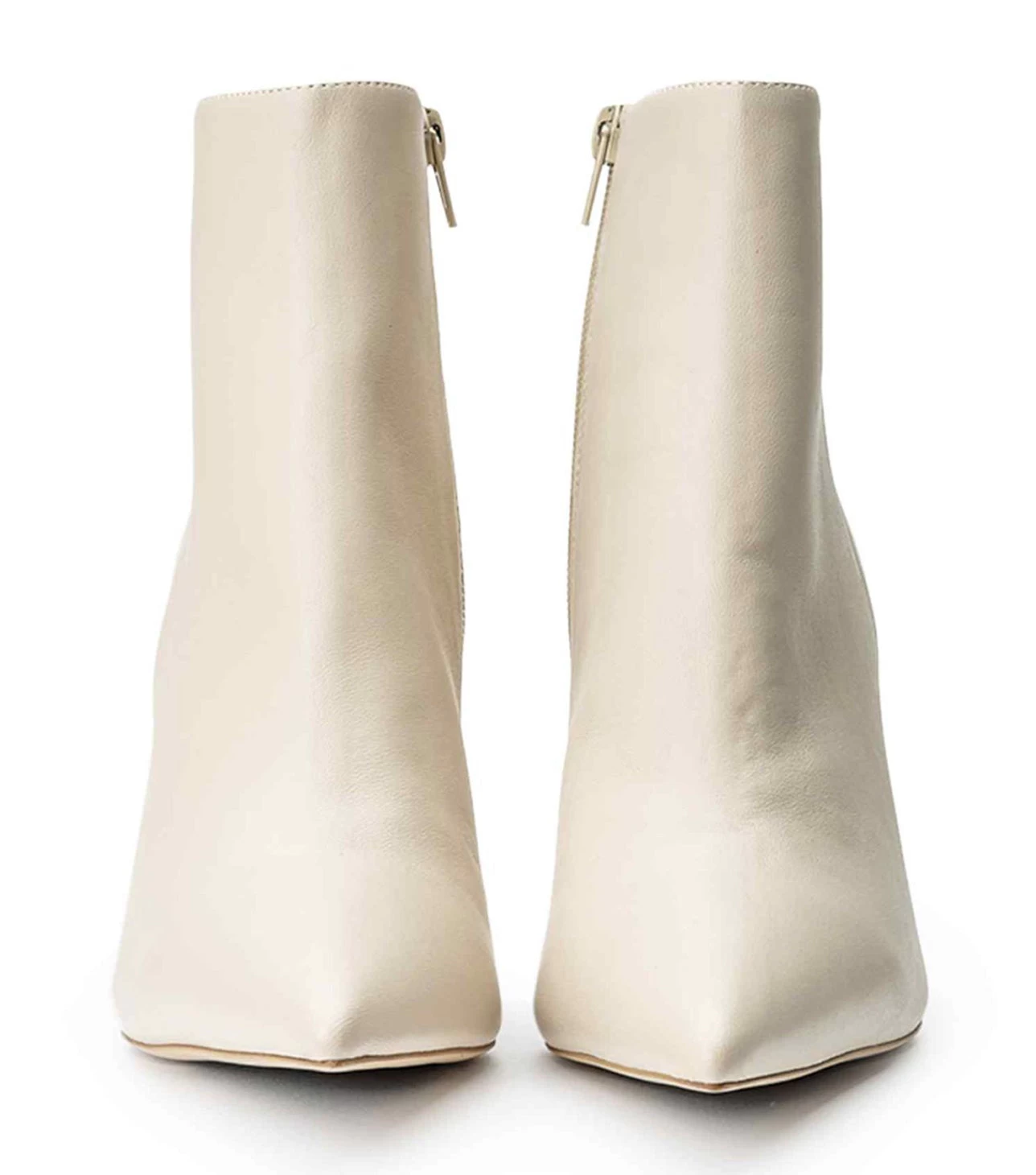 All signs point to yes with the new Keanu leather ankle boot. With an ultra sleek pointed toe, stiletto heel and smooth leather upper, this vanilla ankle boot is sophistication personified.