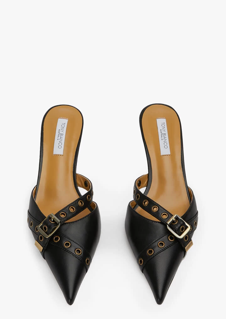 Introducing our stylish pointed pump, Kelsey. Featuring buckle embellishment and a classic silhouette, this heel is perfect for day to night wear, all year round. Designed in our ultra luxe black leather for a timeless finish.