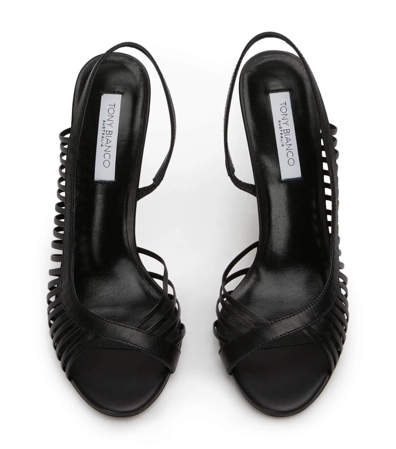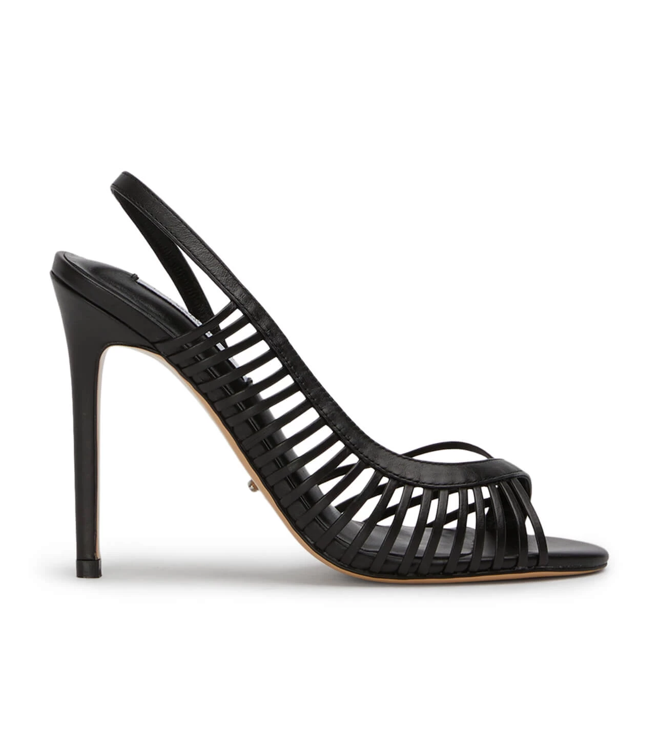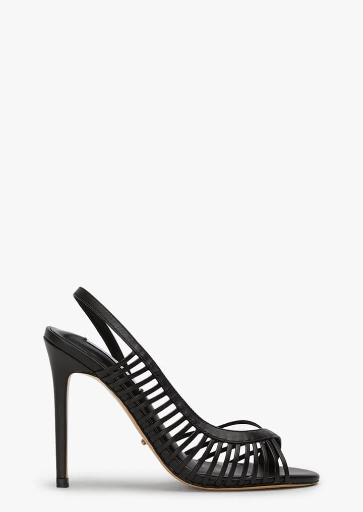 It’s all in the detail rings true for our stiletto heel Klass. This black heel boasts a sling-back, open rounded toe and curved strap detailing.