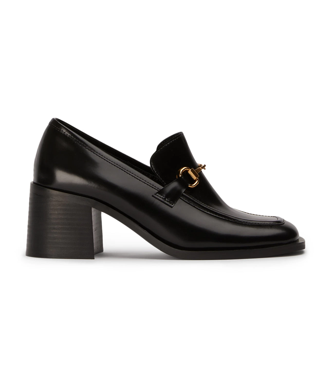 Sleek in design with our hi-shine leather upper Livia, will soon be on high rotation. Showcasing simplicity, this loafer features minimal stitch detailing and a gold chain as well as a high-cut vamp.