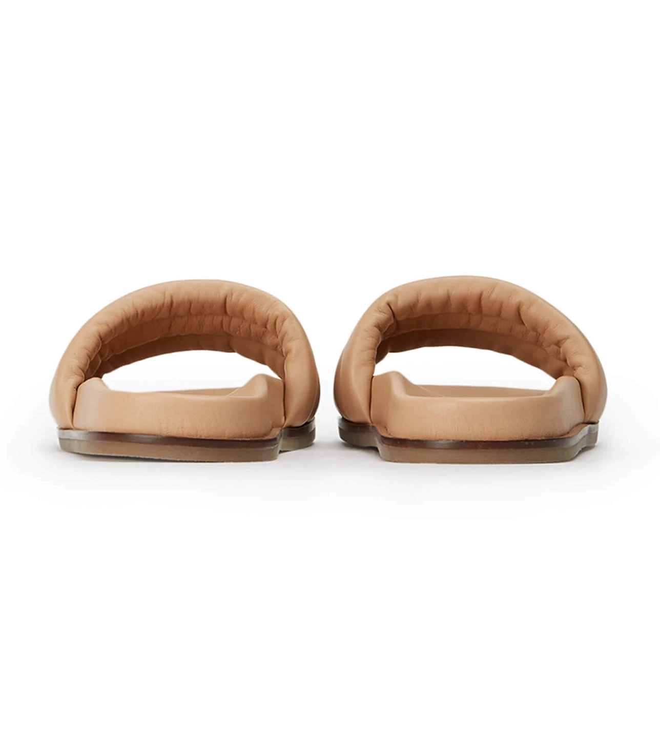 We’re looking at Lucas this season for comfort and style. Featuring a plush ridged leather upper, wide foot-bed and lux leather lining, this beige slide-sandal can definitely do both.