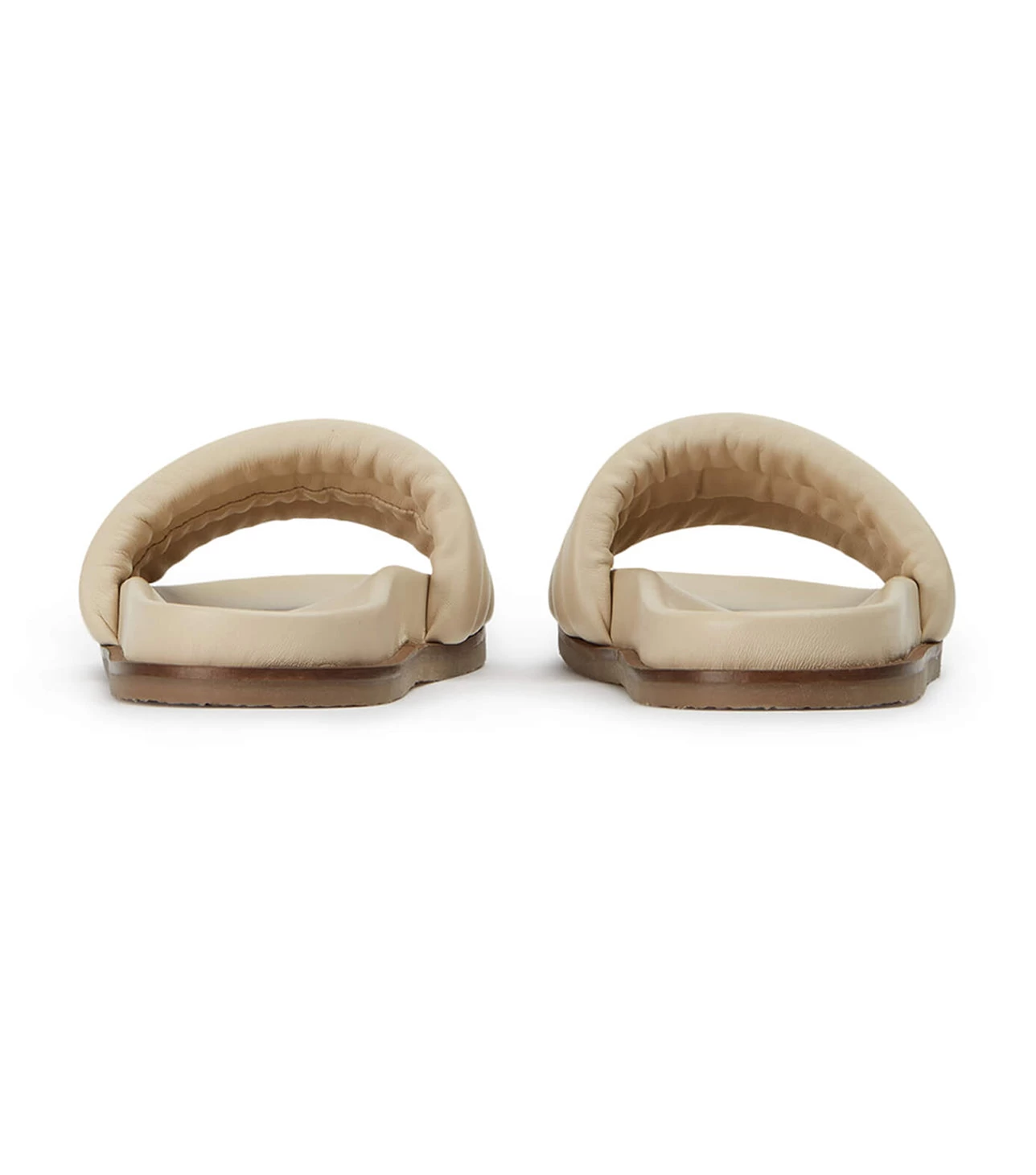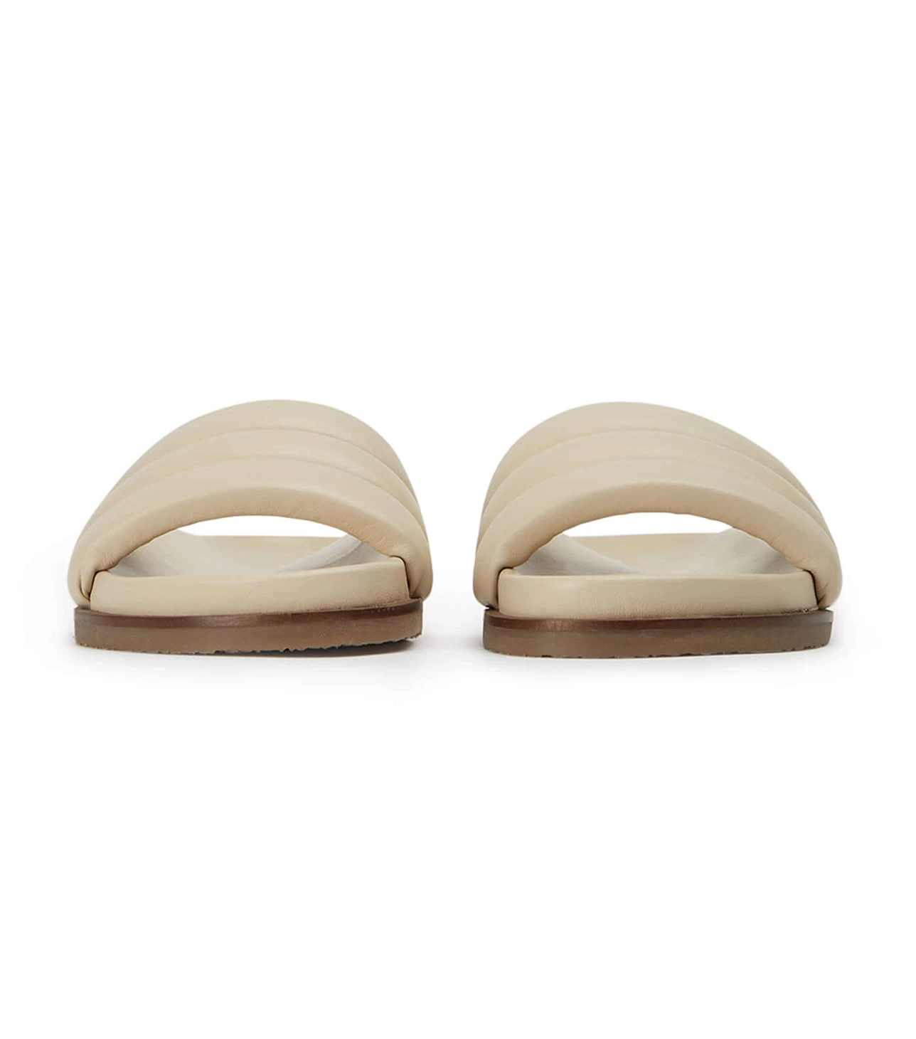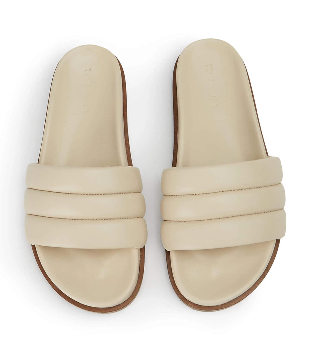 We’re looking at Lucas this season for comfort and style. Featuring a plush ridged leather upper, wide foot-bed and lux leather lining, this vanilla slide-sandal can definitely do both.