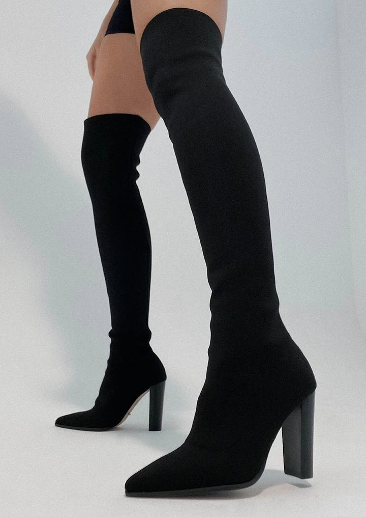 It’s simply the stretch with the new Lucca over the knee boots. This ultra thigh high style is the perfect combination of sophistication and comfort, with a block heel and sock silhouette let these complete your winter wardrobe.