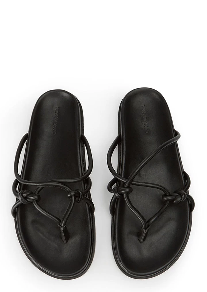 The mood is Euro summer and Luelle is ready to take you there. Featuring a lux black leather lining, wide foot-bed and artisanal woven upper, this slide-sandal will meet you in Positano.